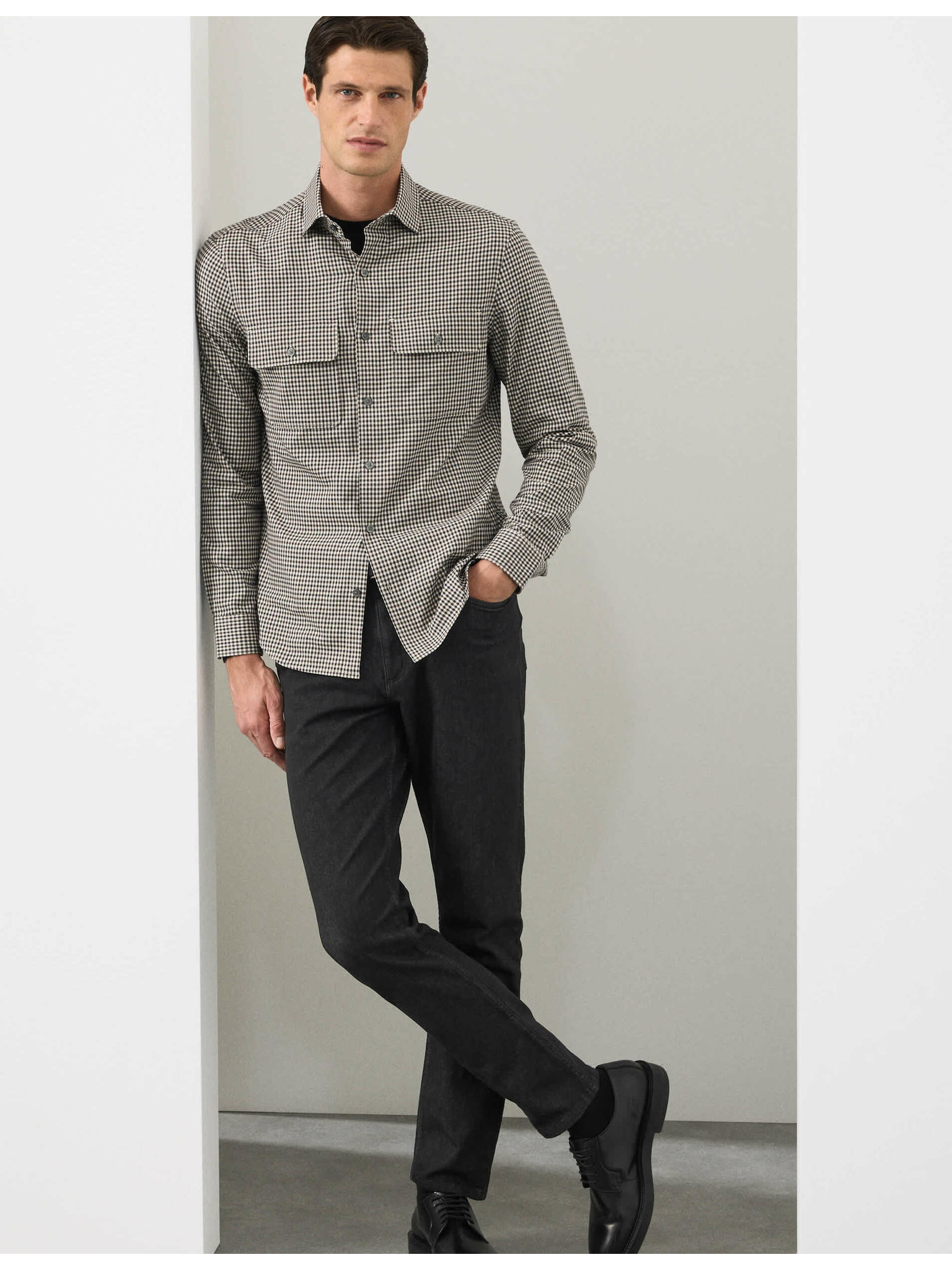 Карирана оксфордска риза The Ultimate от чист памук Marks & Spencer черна