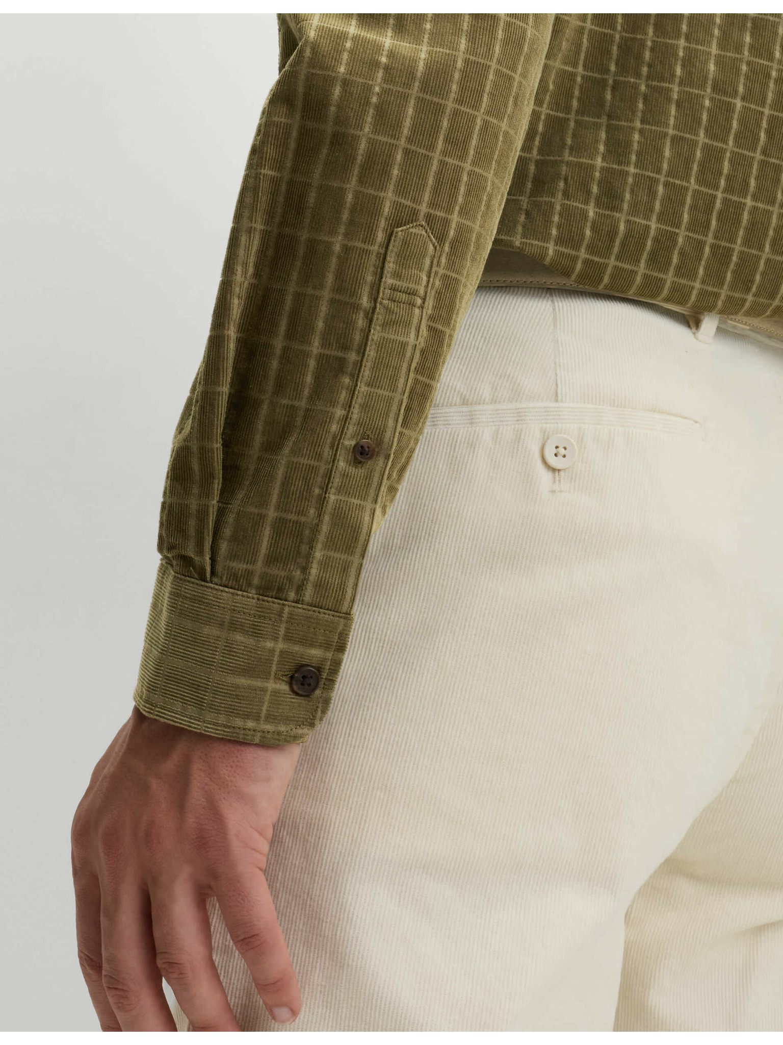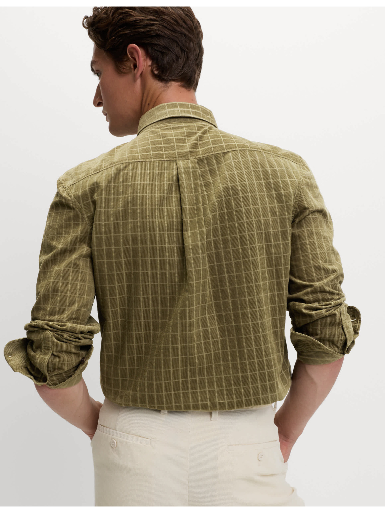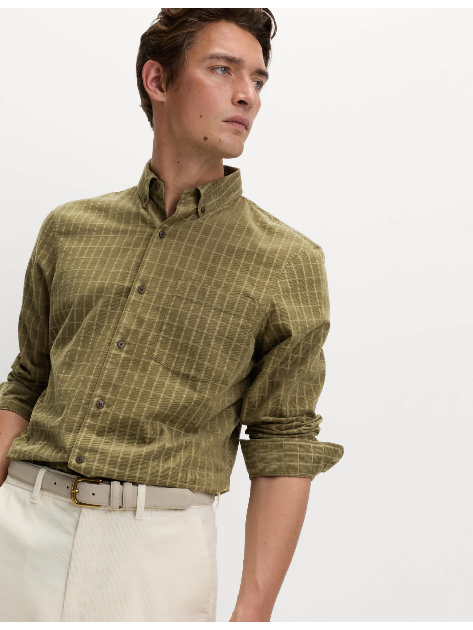 Мъжка памучна риза с права яка и джоб REGULAR FIT - каки