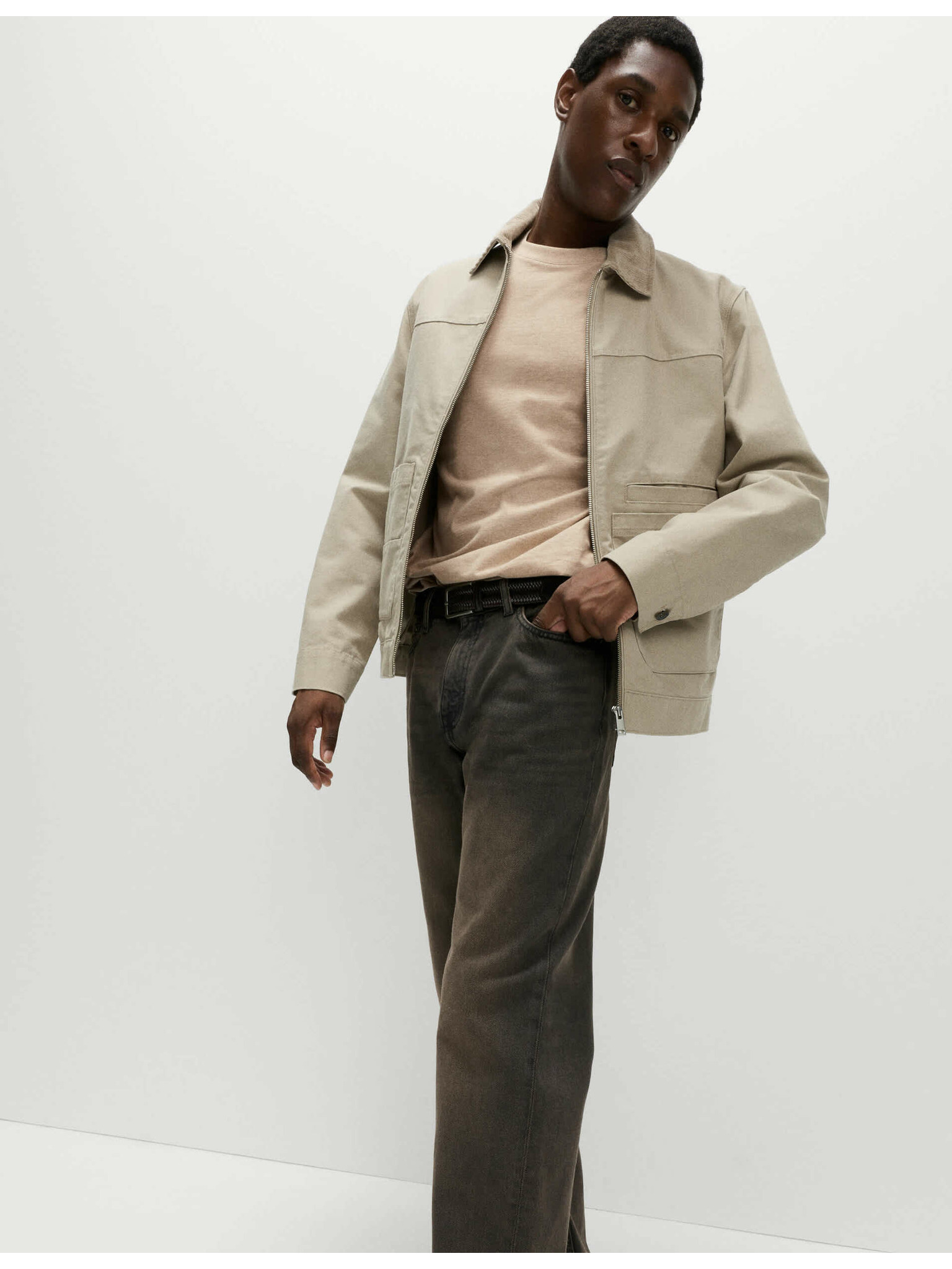 Бежова мъжка основна тениска Ombre Clothing