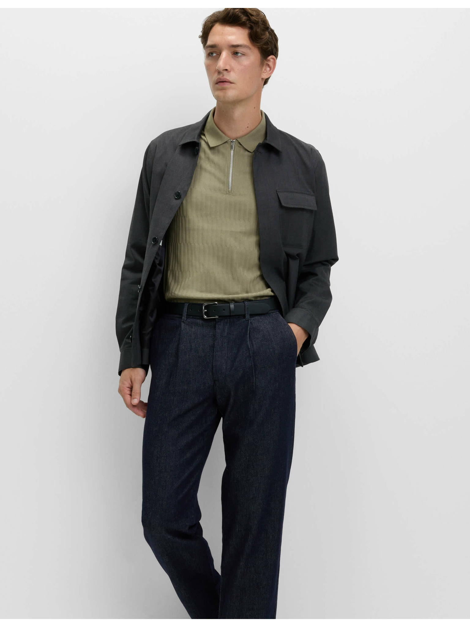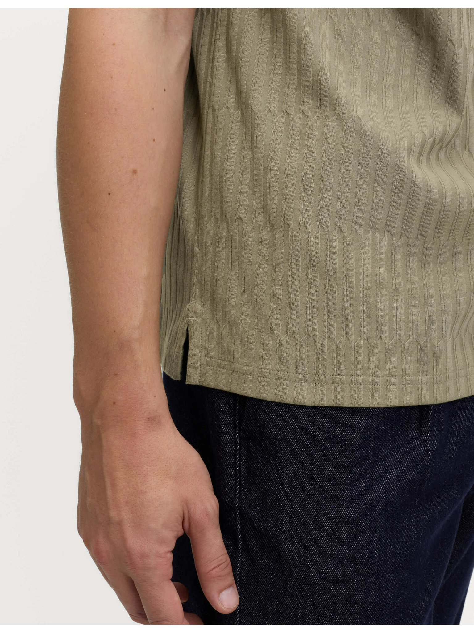 Мъжка плетена поло риза без копчета - маслинена
