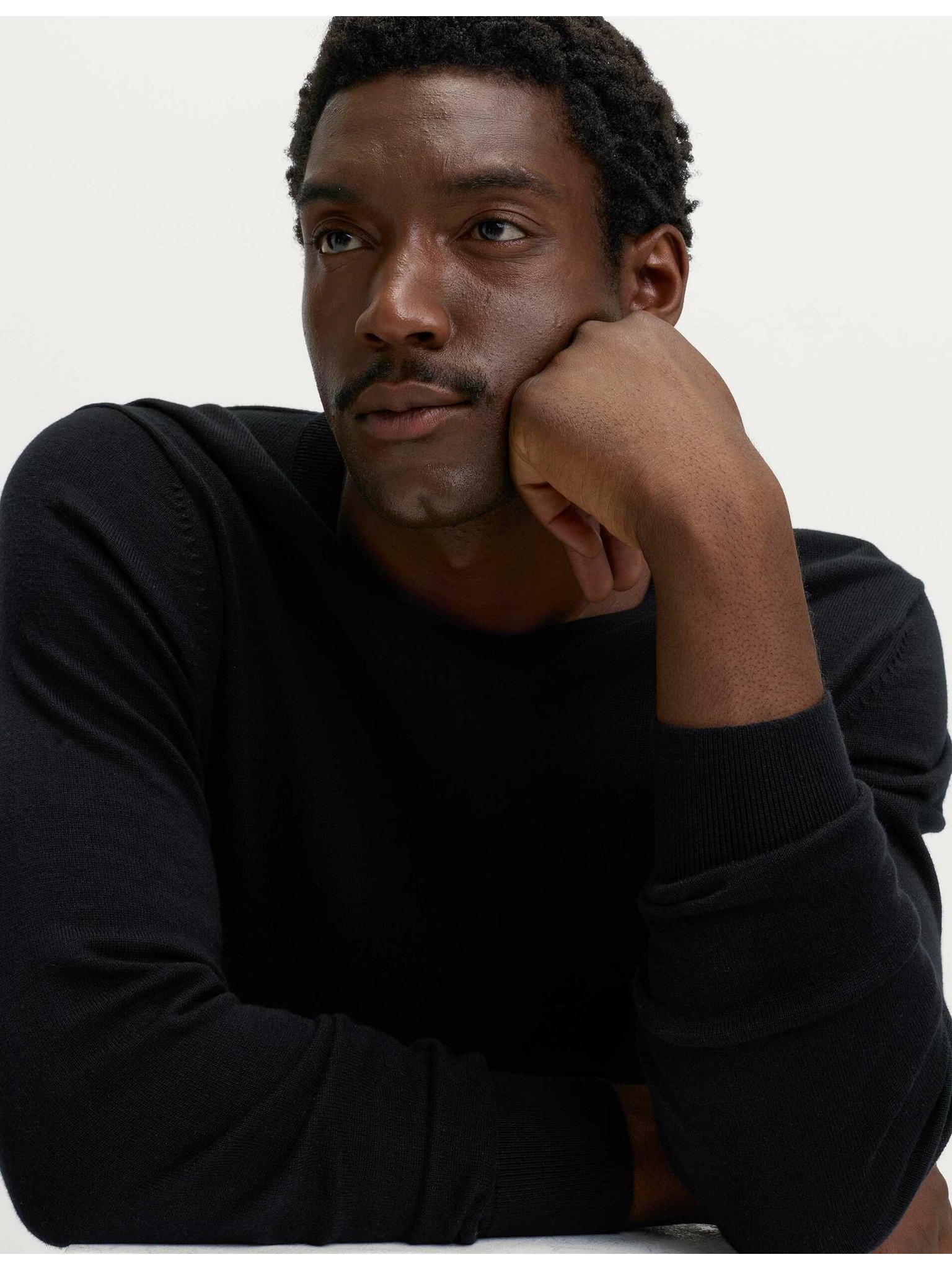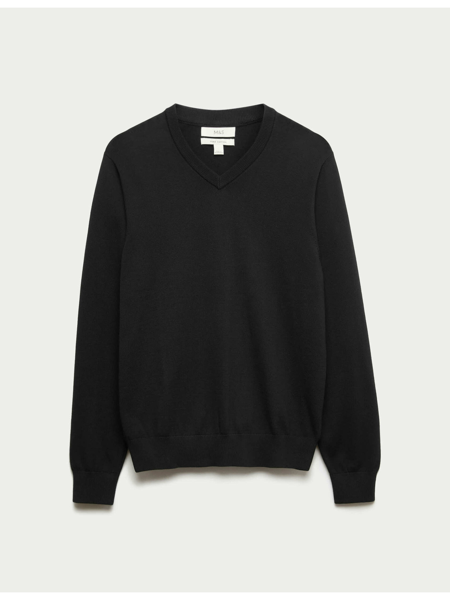 Суитшърт с V-образно деколте от чиста извънредно фина вълна мерино Marks & Spencer черна
