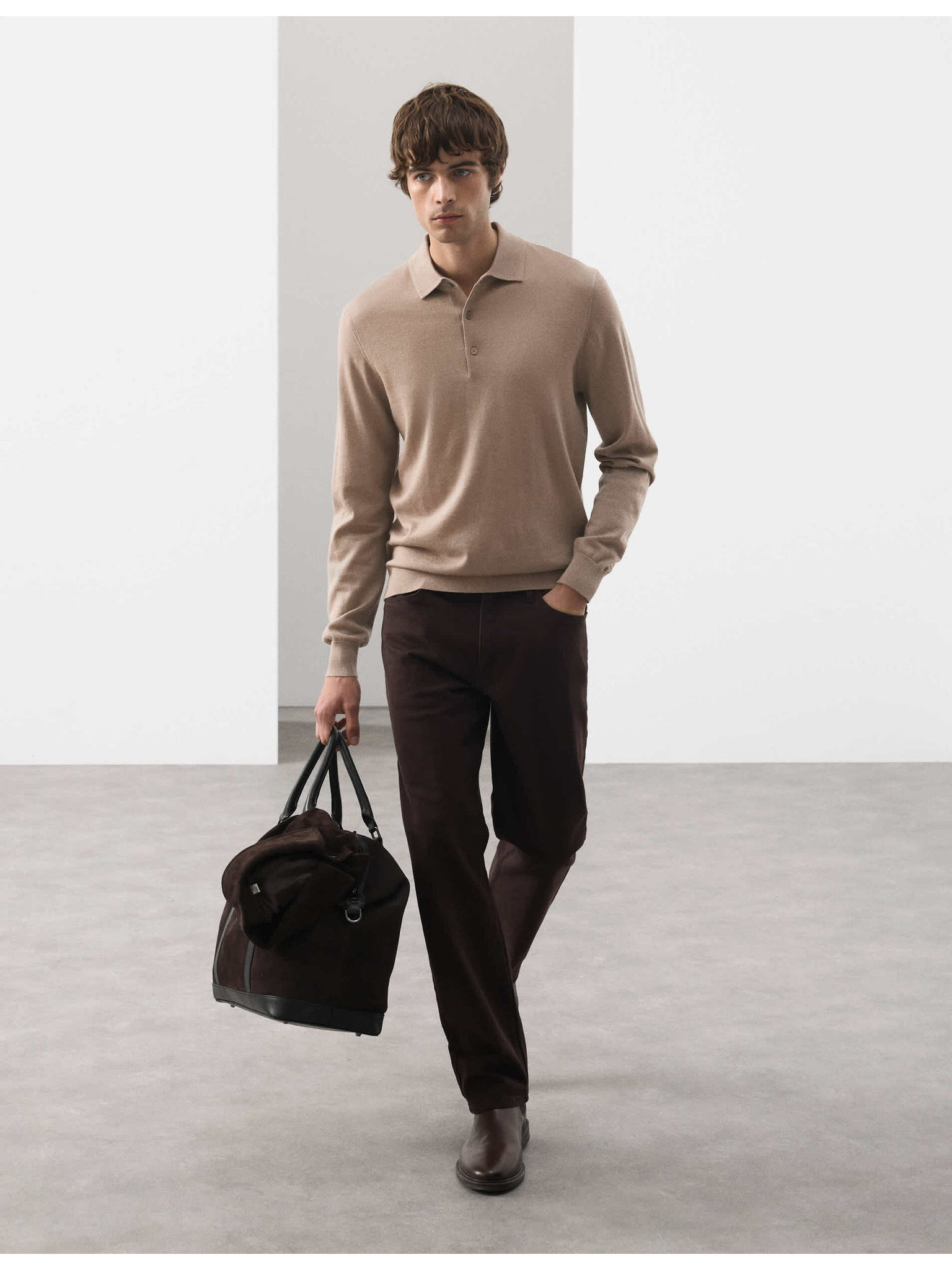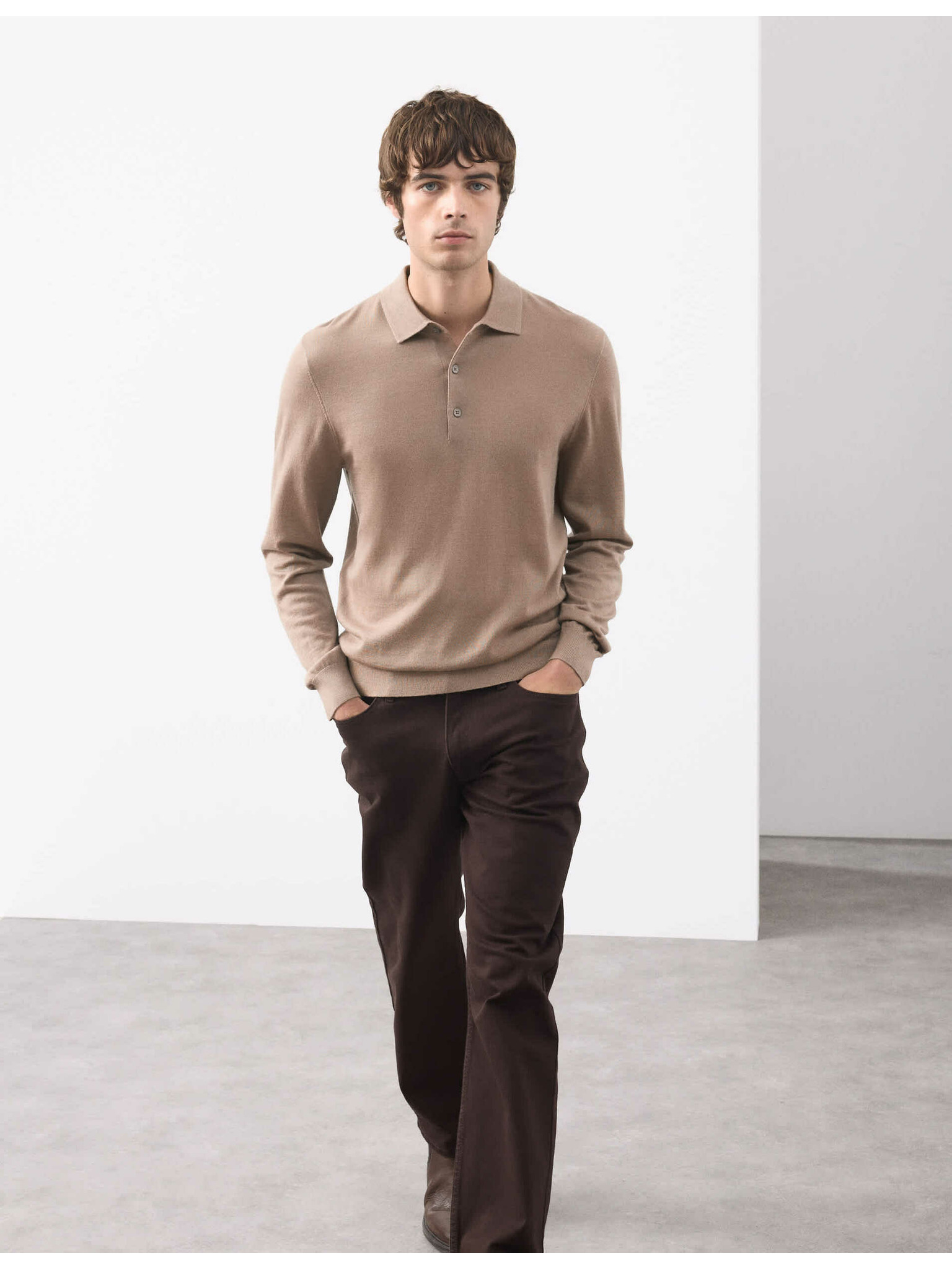 Поло риза Milano Knit с разхлабен цип Marks & Spencer кафява