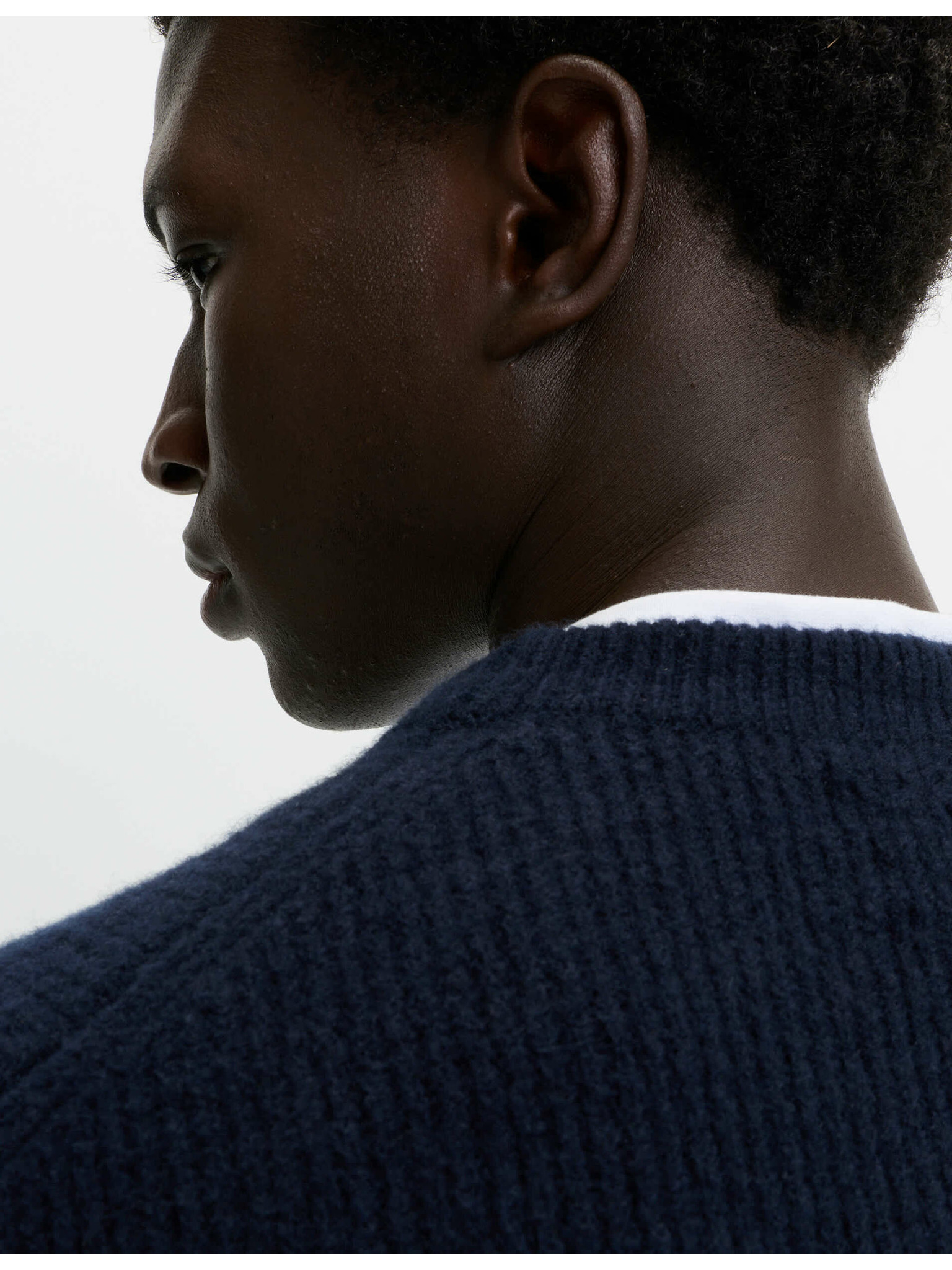 Суитшърт с V-образно деколте от чиста извънредно фина вълна мерино Marks & Spencer морско синя