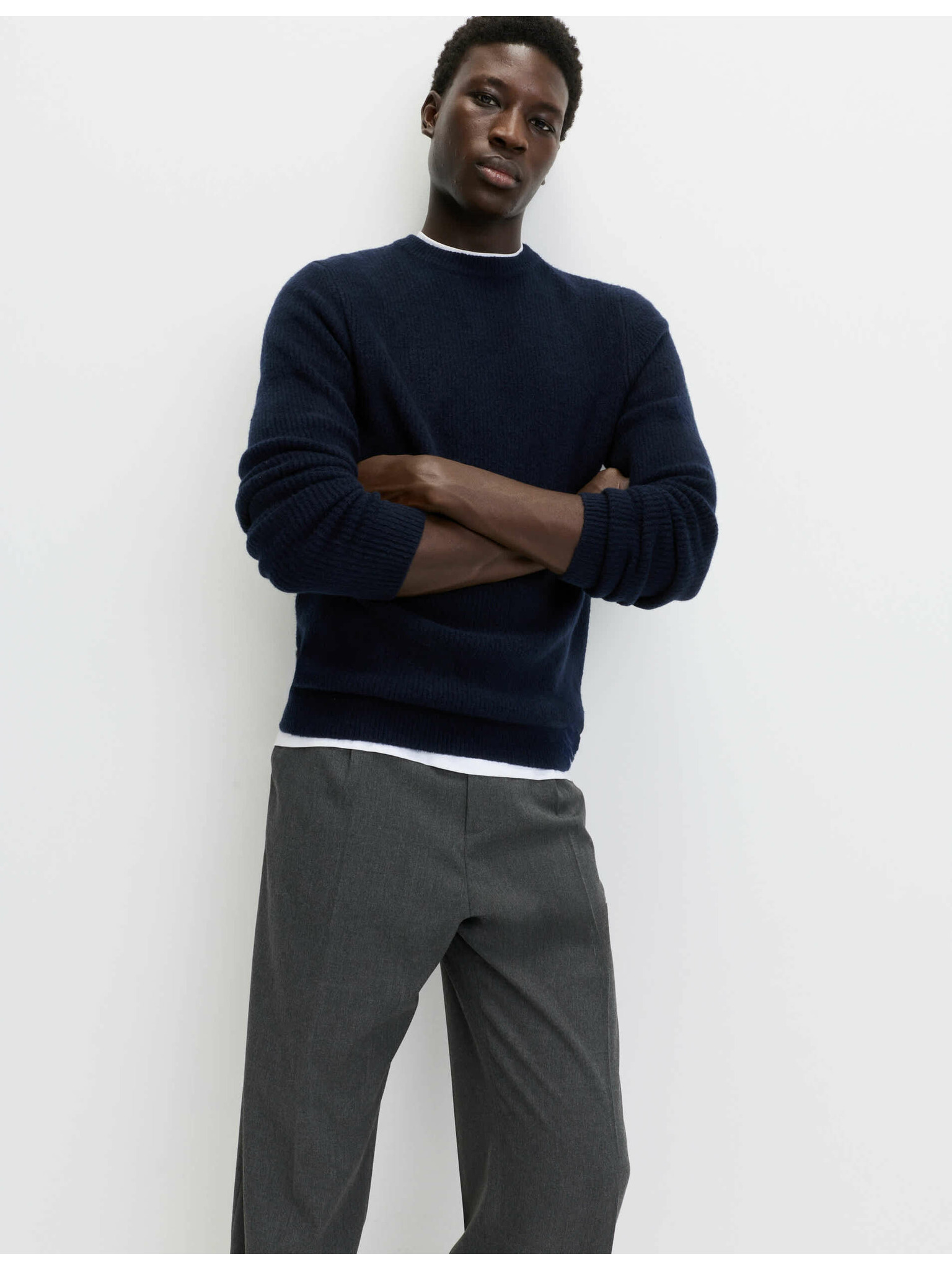 Суитшърт от чиста извънредно фина вълна мерино Marks & Spencer морско синя