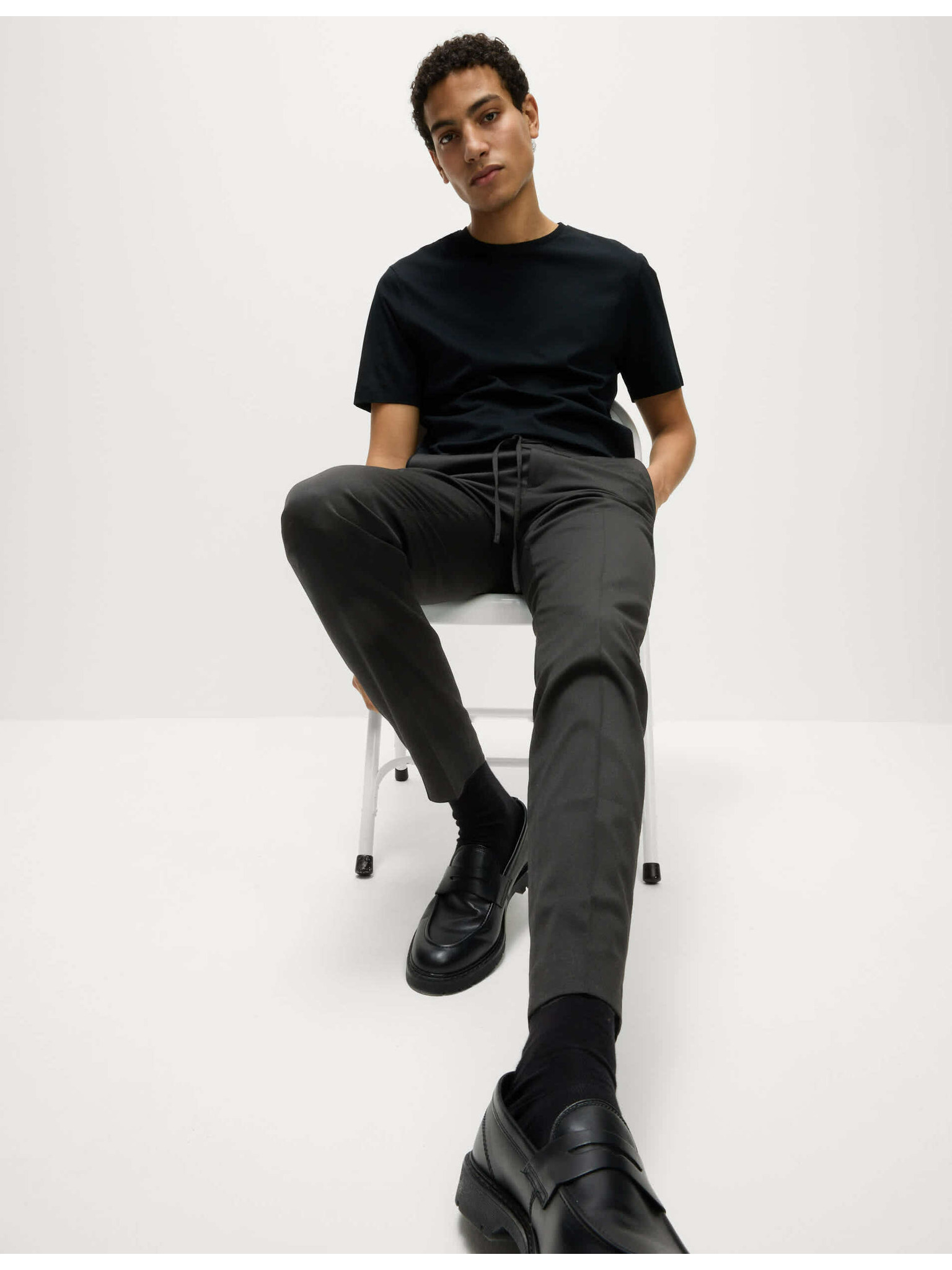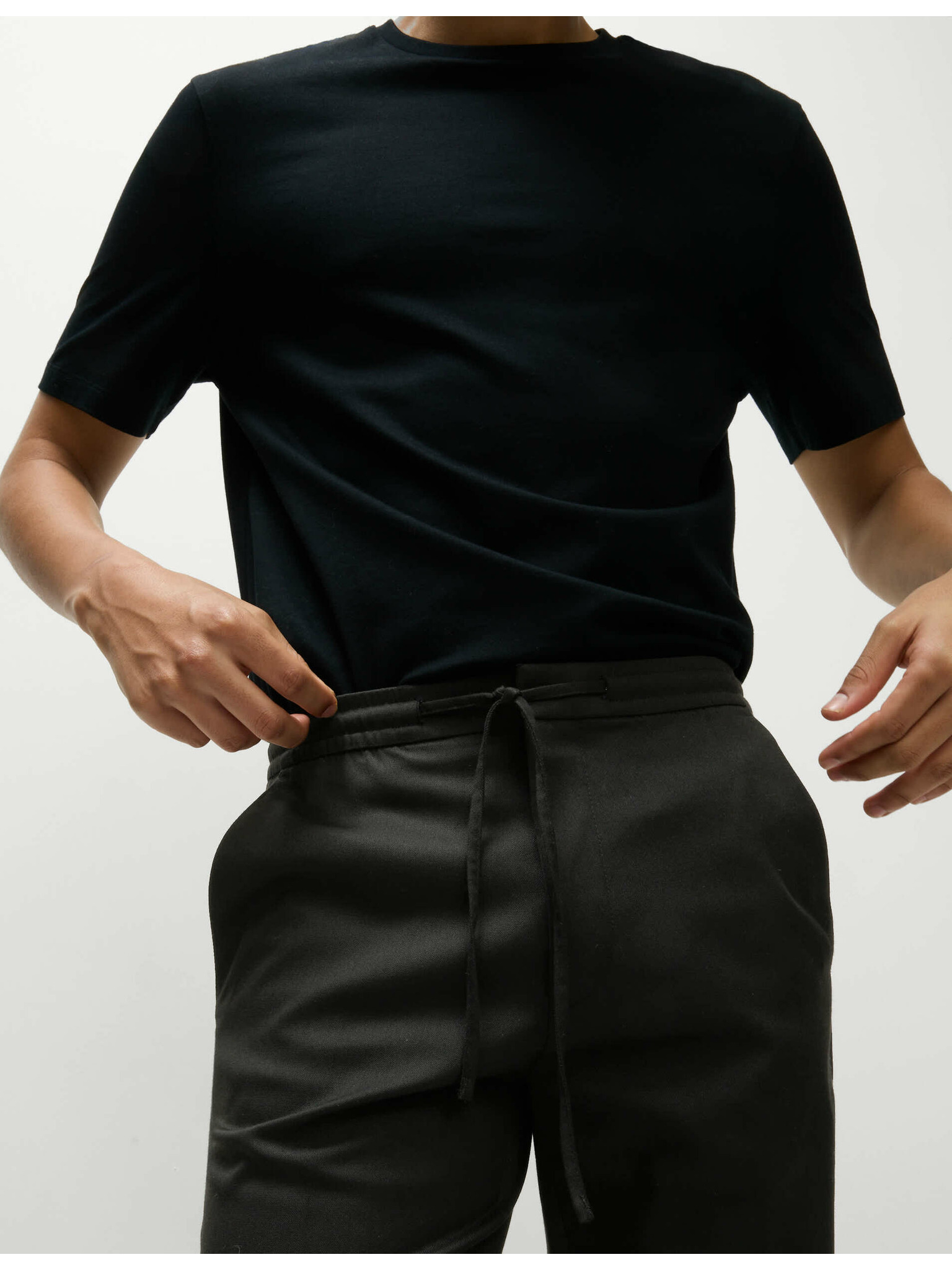 Долнища с прави крачоли, връзка и висок дял памук Marks & Spencer черни