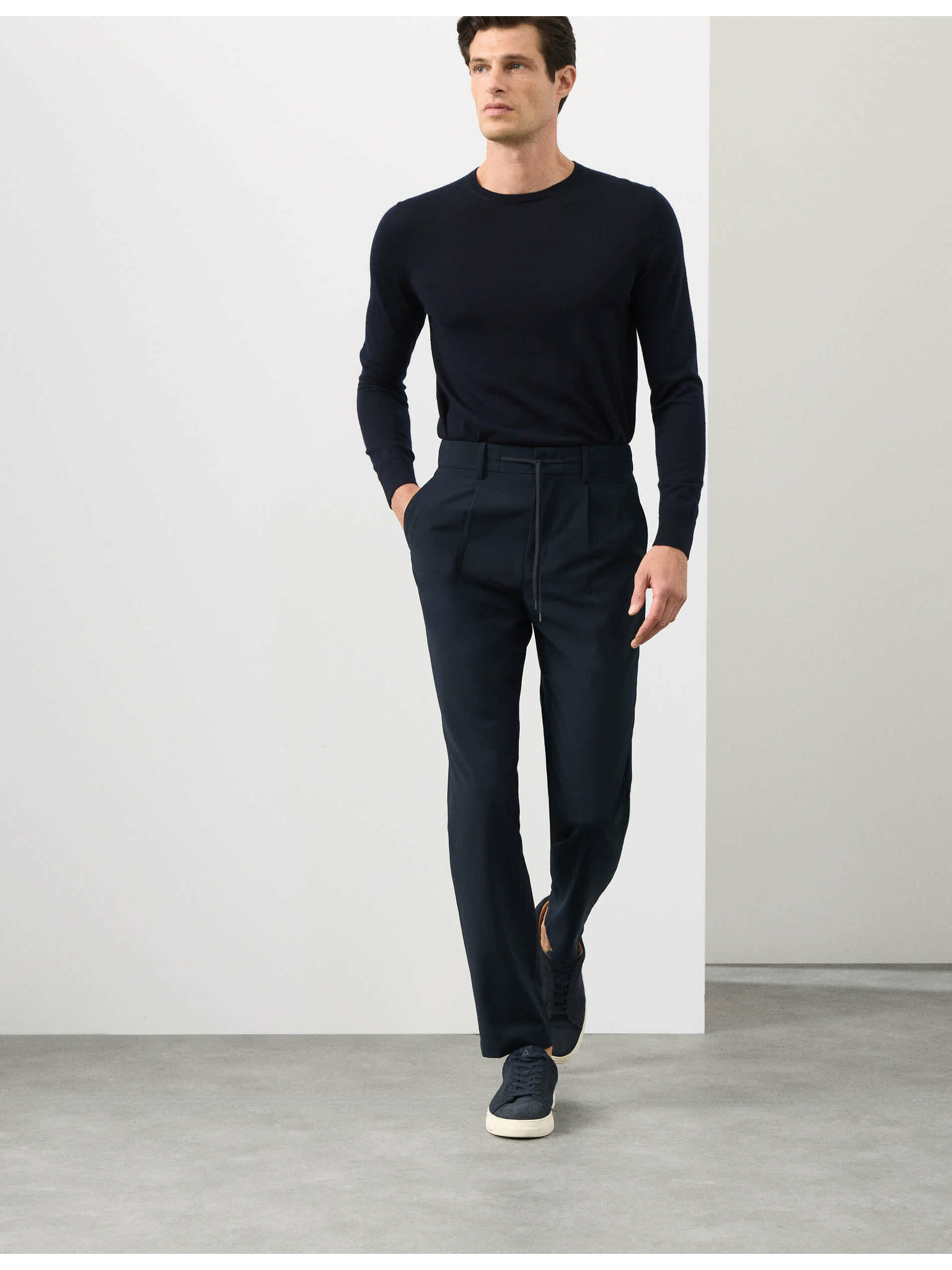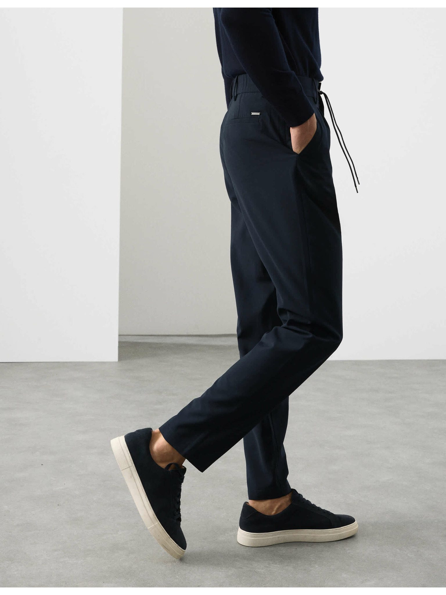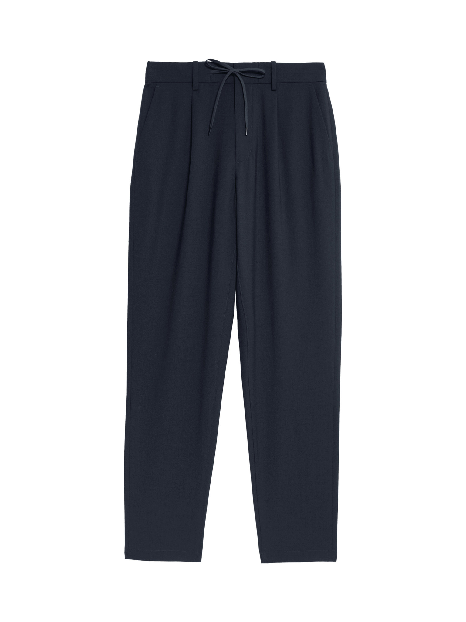 Долнища с прави крачоли, връзка и висок дял памук Marks & Spencer морско синьо