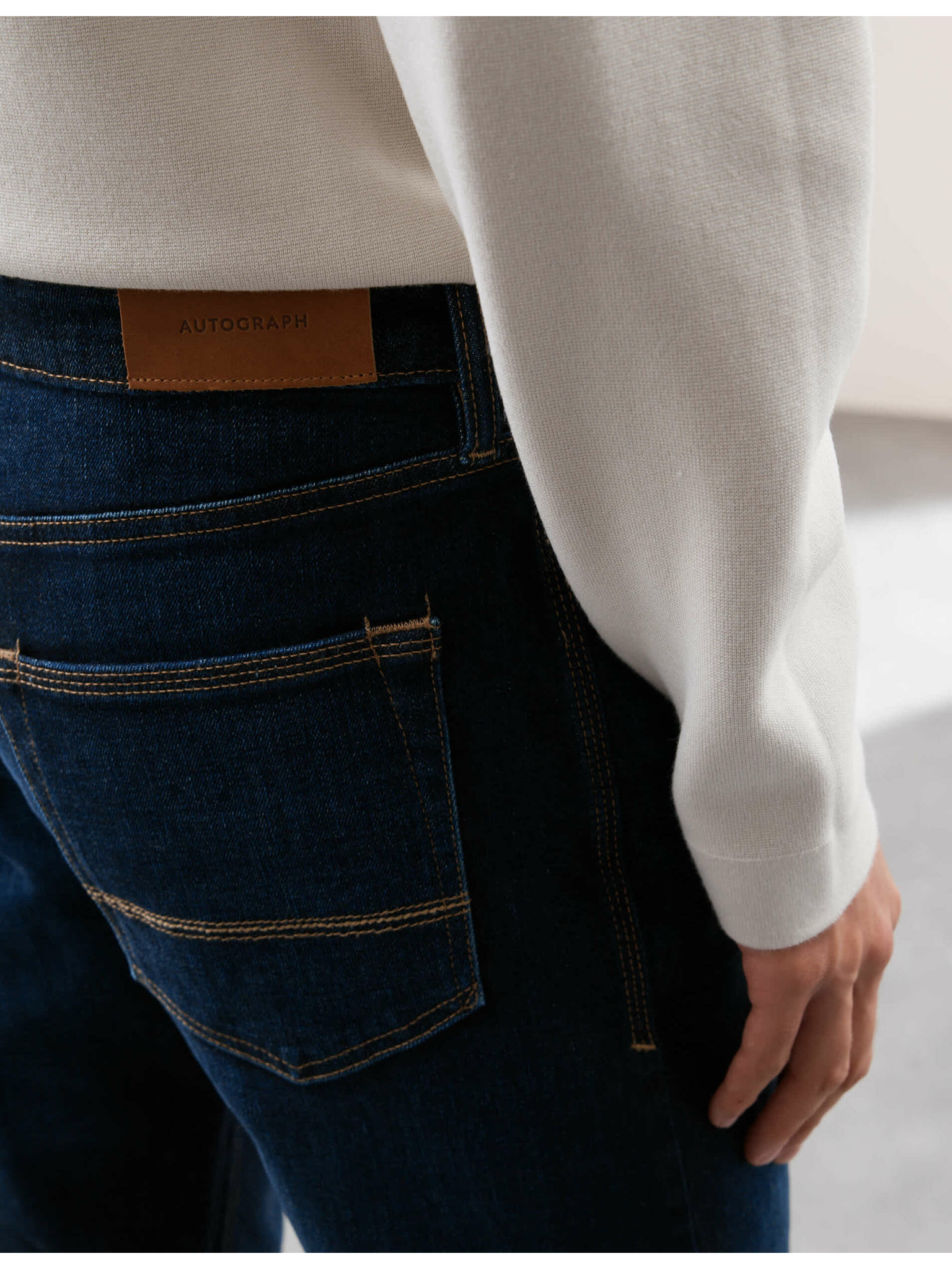 Еластични дънки с права кройка Marks & Spencer тъмносини