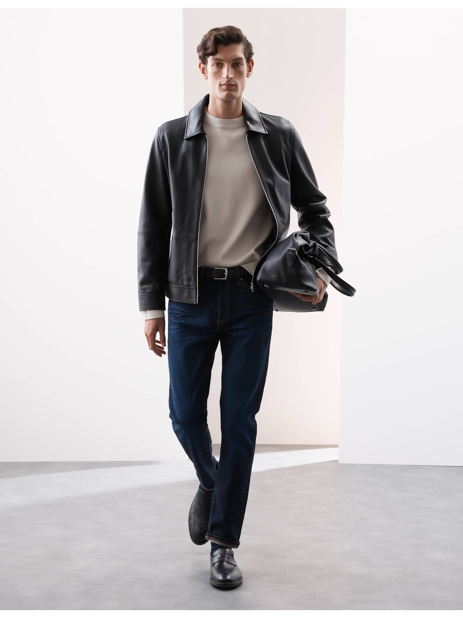 Еластични дънки в японски стил, тясна кройка Marks & Spencer черен