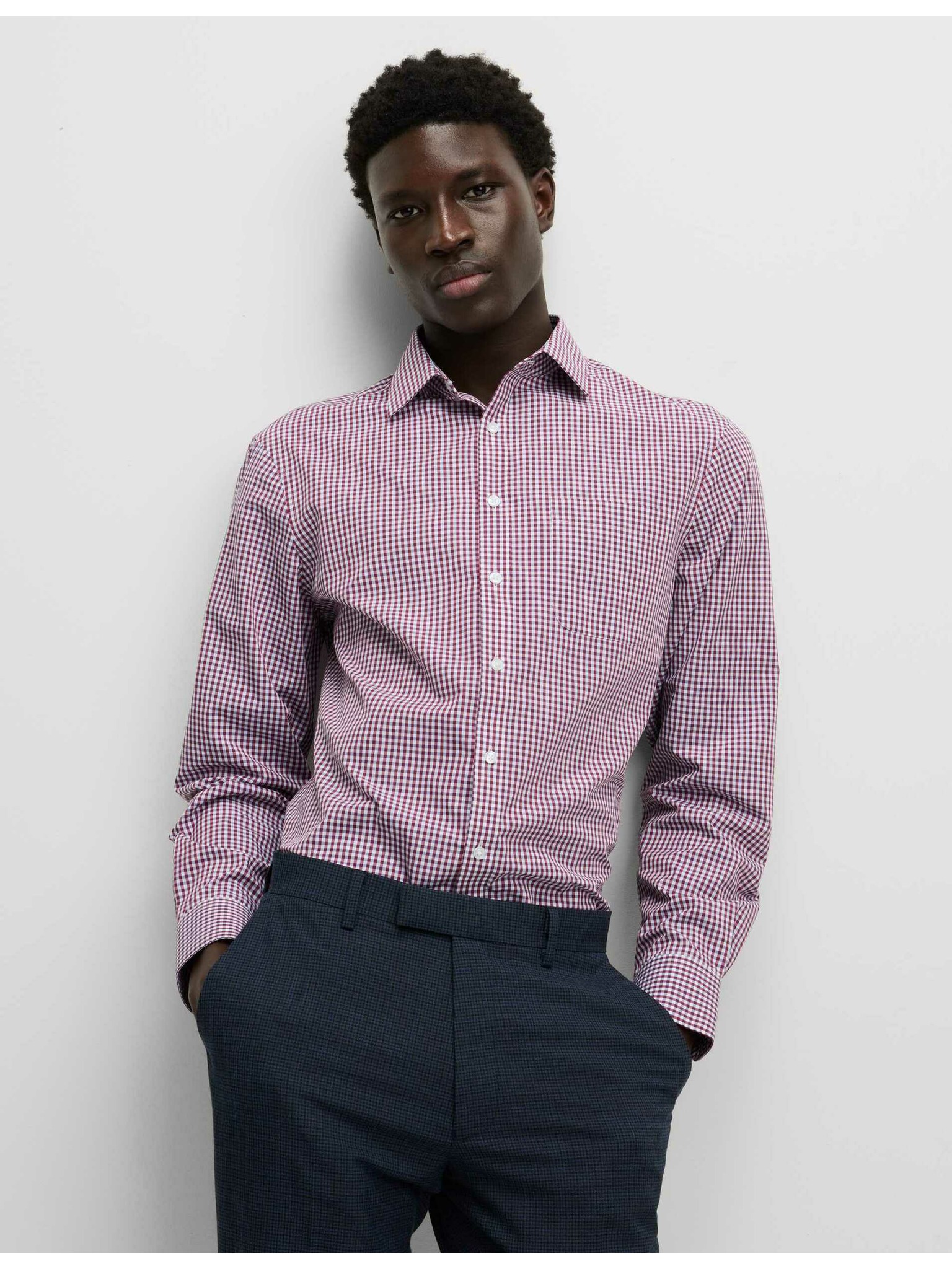 Луксозна риза с нормален силует от чист памук с текстура Marks & Spencer червена
