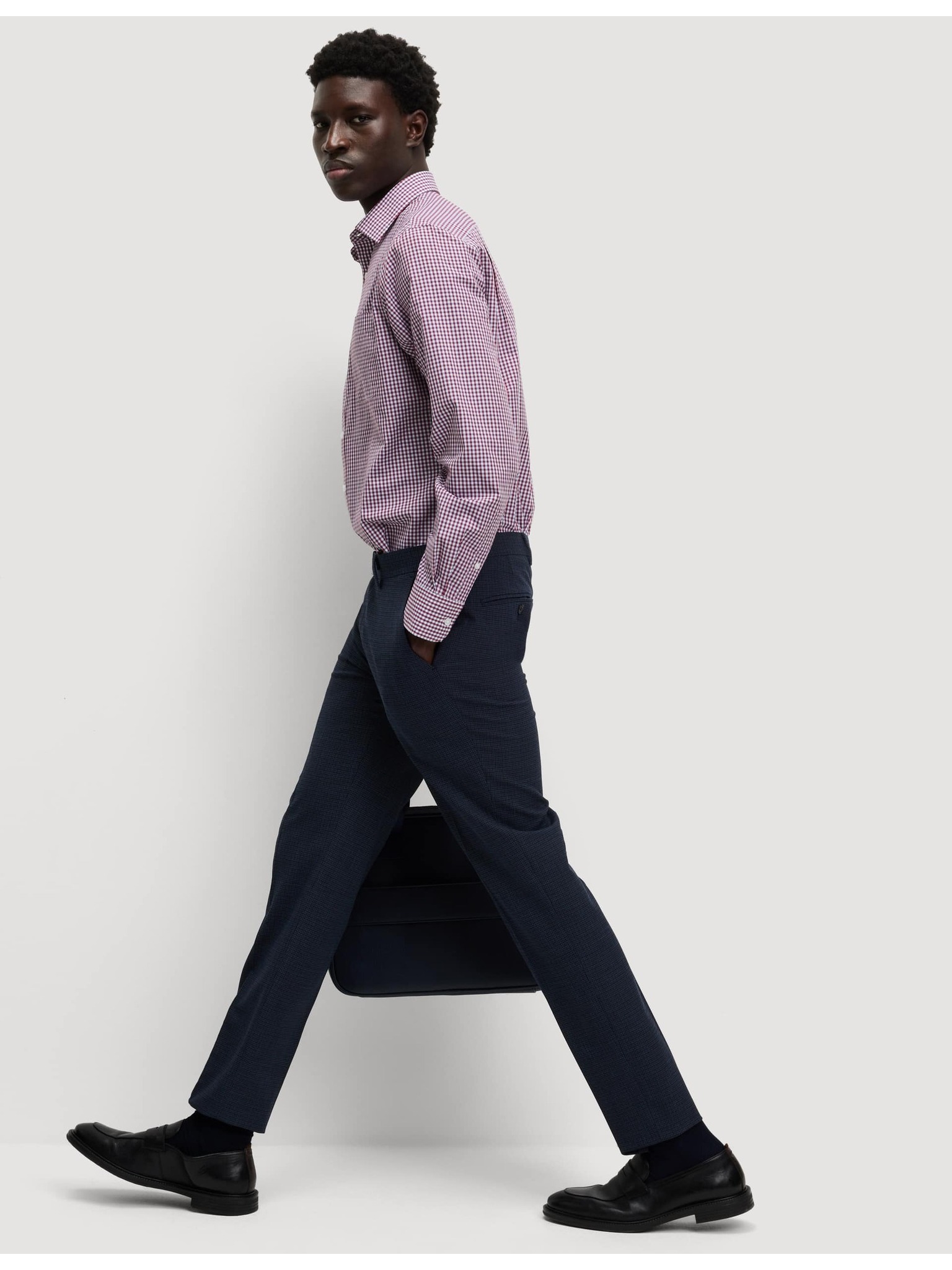 Черна риза с тесен силует, лесна за гладене Marks & Spencer