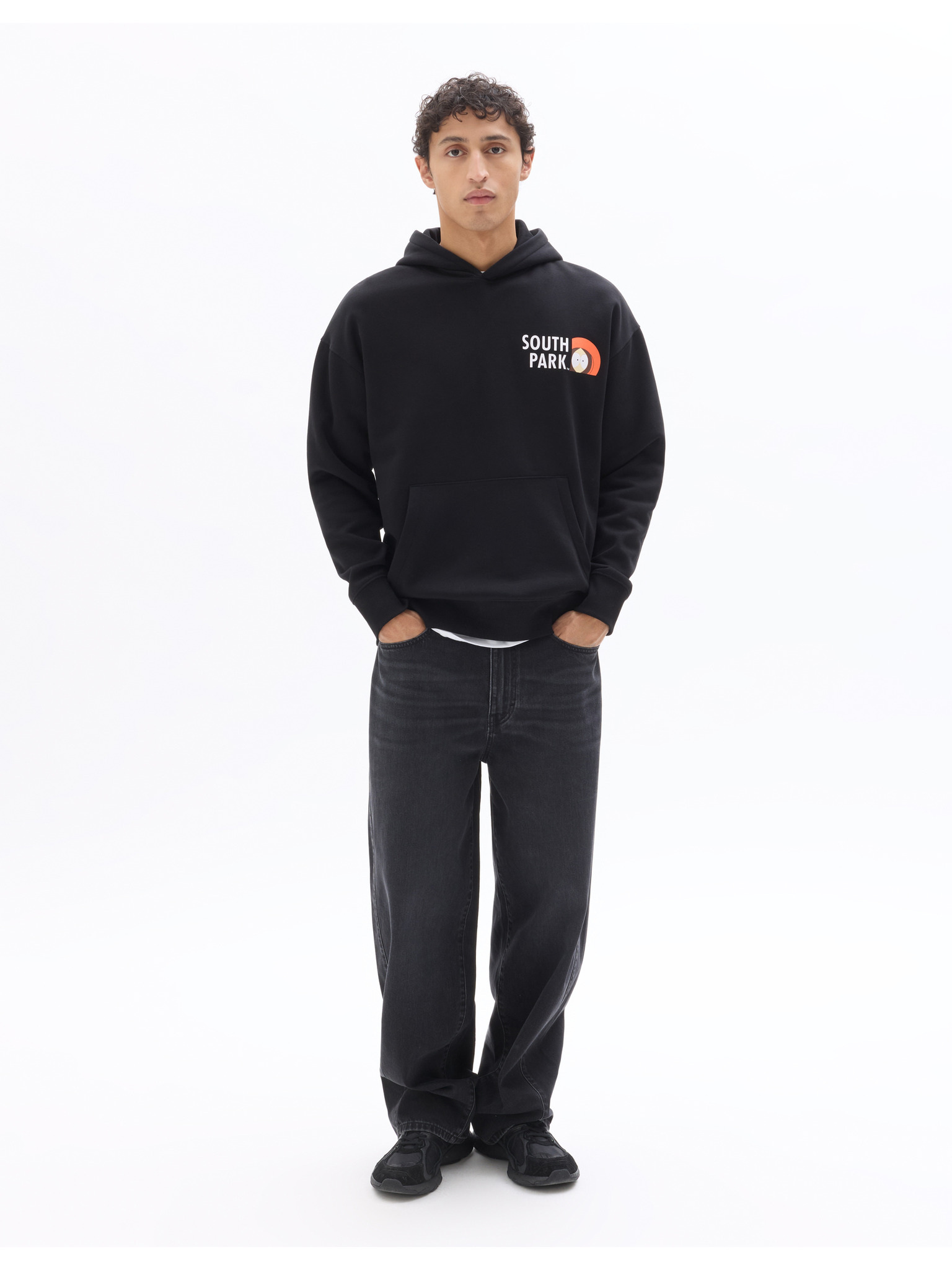 Мъжки суитшърт с качулка и графика - черен V3 B1714 Ombre Clothing