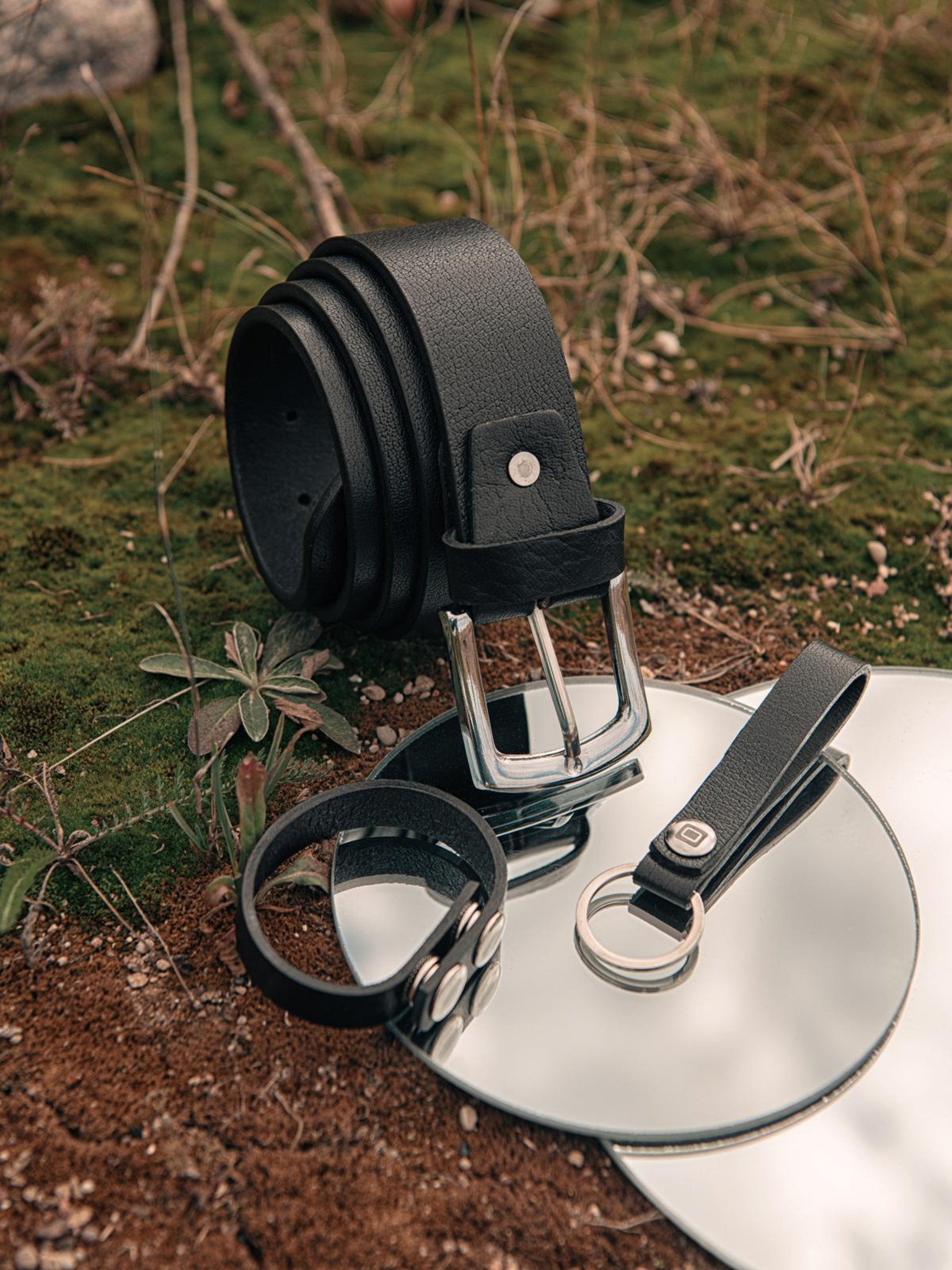 Комплект мъжки кожени аксесоари - черни A654 Ombre Clothing