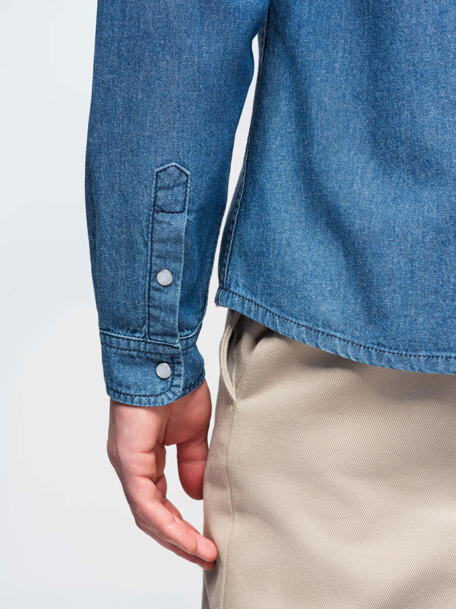 Мъжка дънкова риза с джобове на копчета - светло синьо V1 OM-SHDS-0210 Ombre Clothing