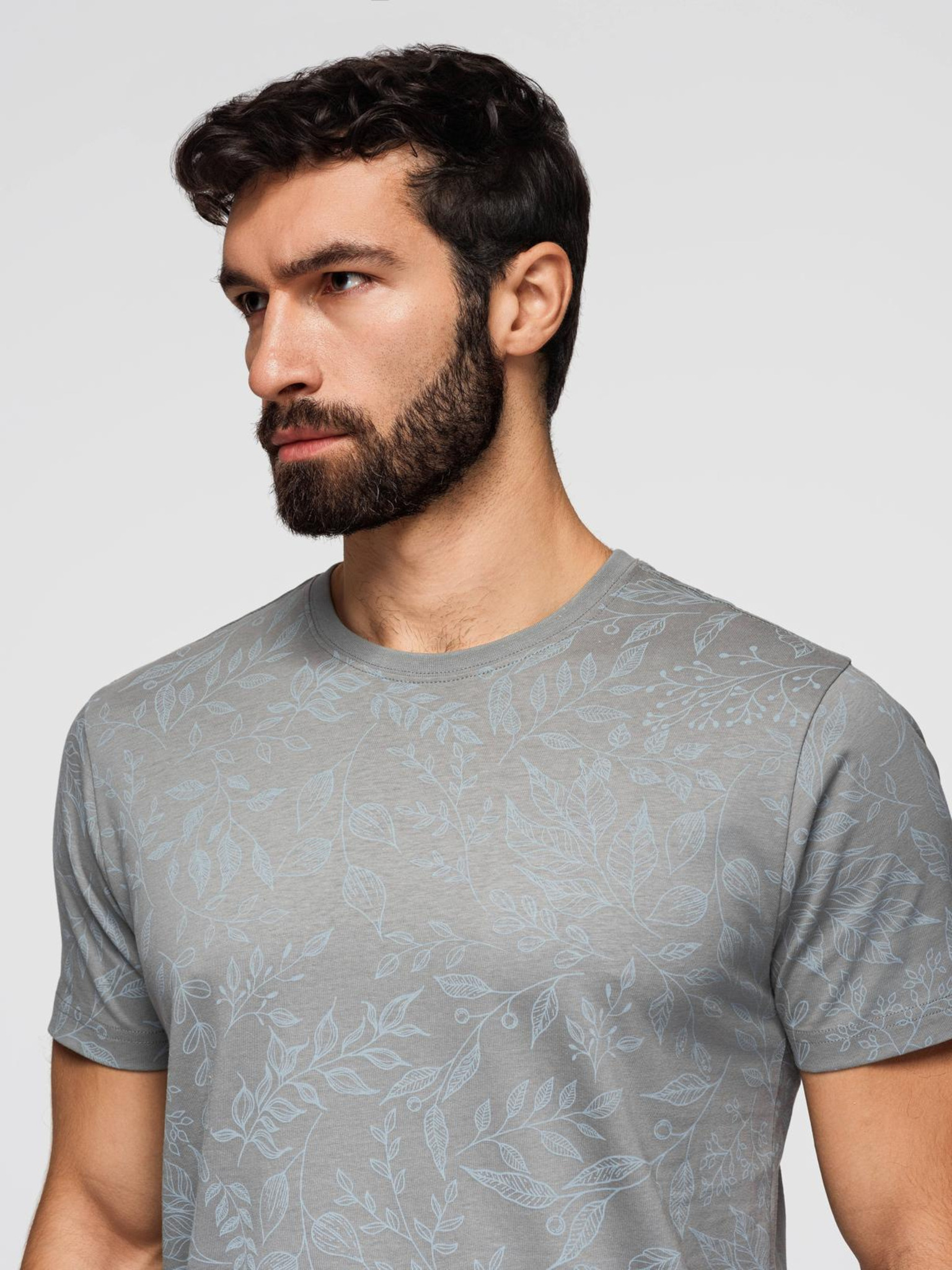Мъжка памучна тениска LOOSE FIT с кръгло деколте - сиво-зелена V3 OM-TSBC-0267 Ombre Clothing