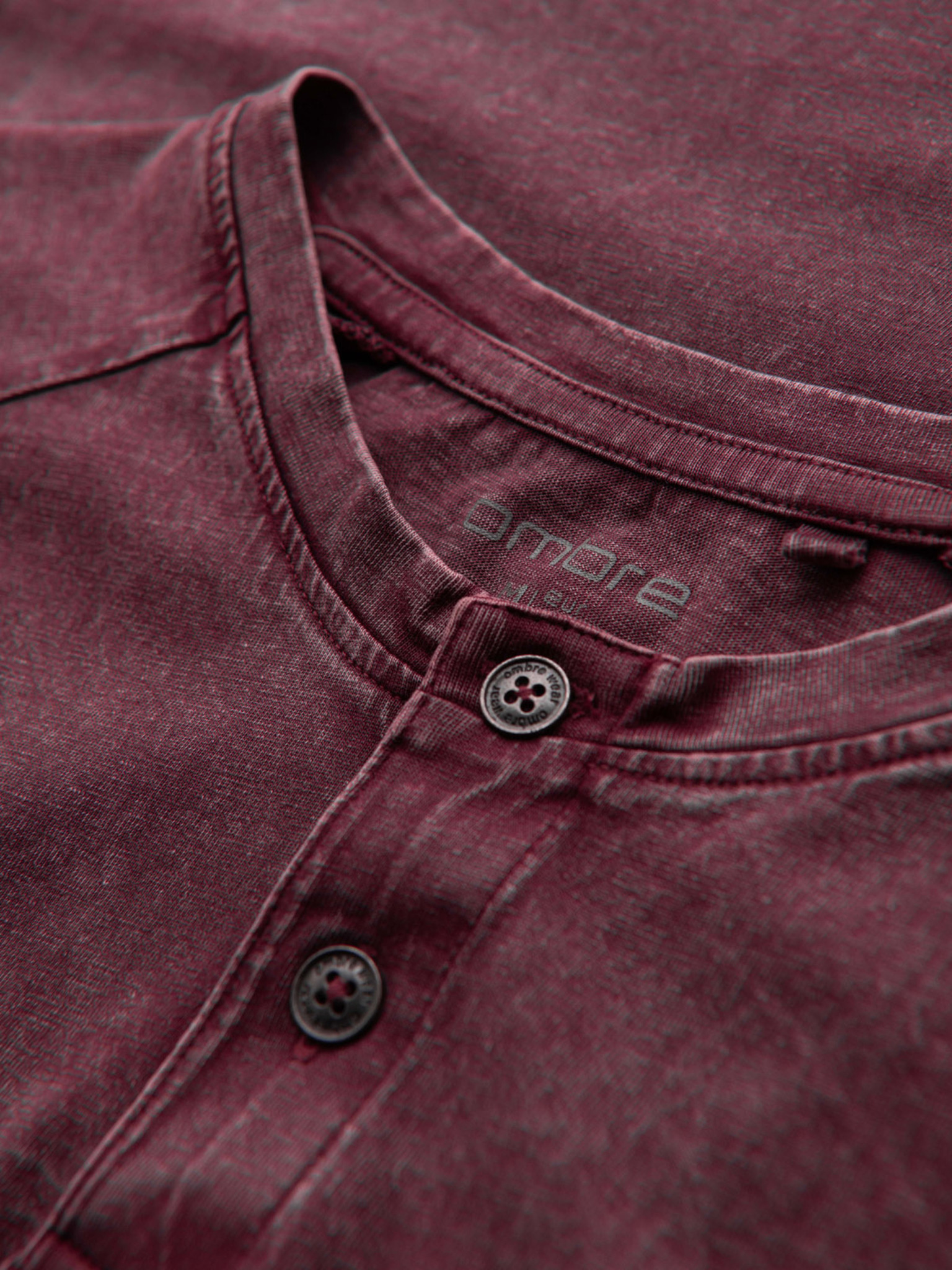 Мъжка тениска с ефект на изпиране - винена V3 OM-TSWT-0116 Ombre Clothing