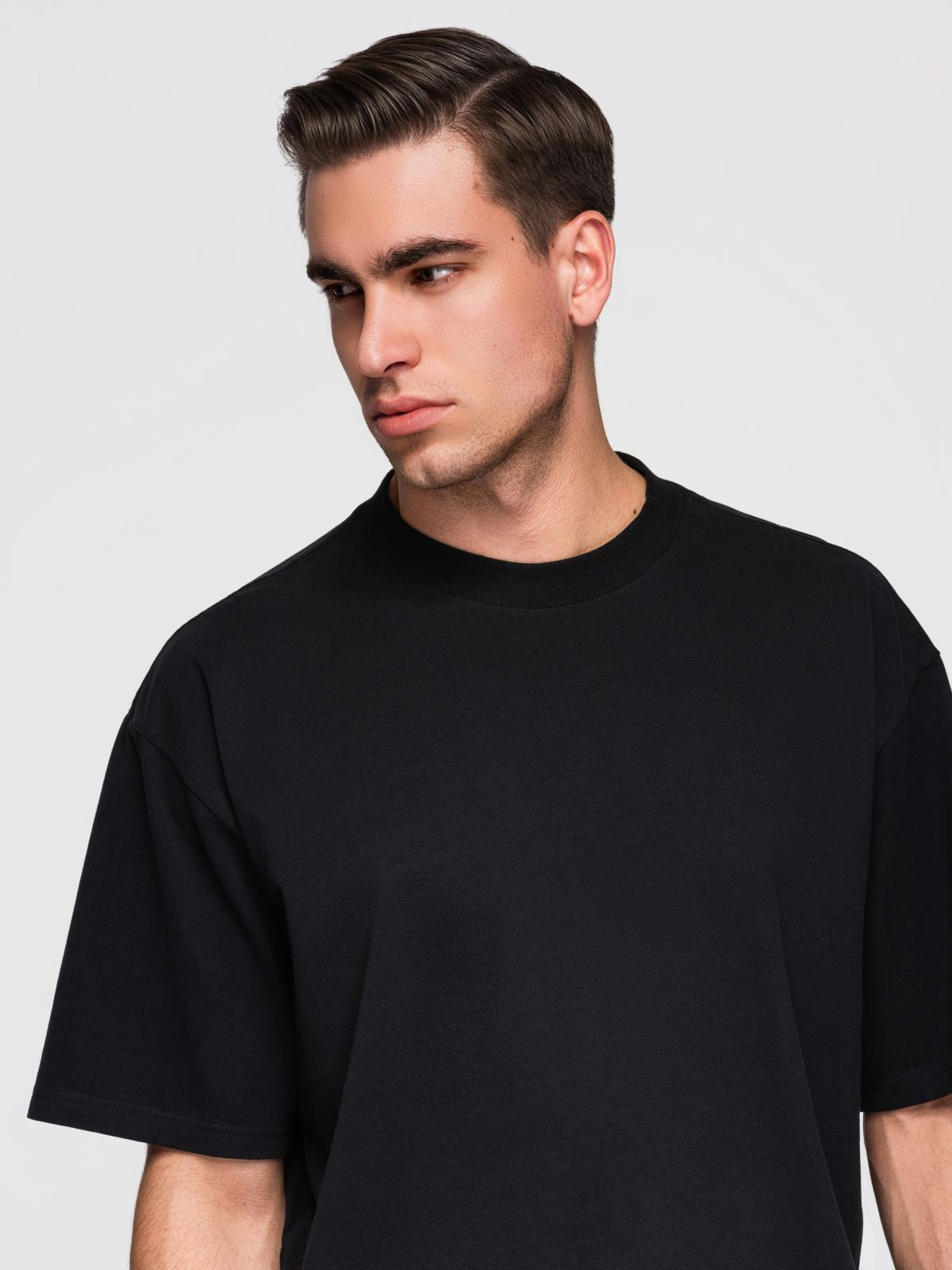 Мъжка класическа памучна тениска BASIC - черно V1 OM-TSBS-0146 Ombre Clothing