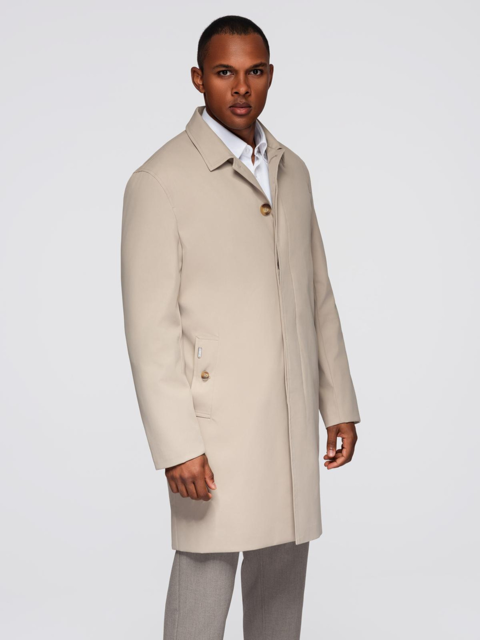 Мъжко лекo едноредно палто - бежово V7 OM-COWC-0104 Ombre Clothing