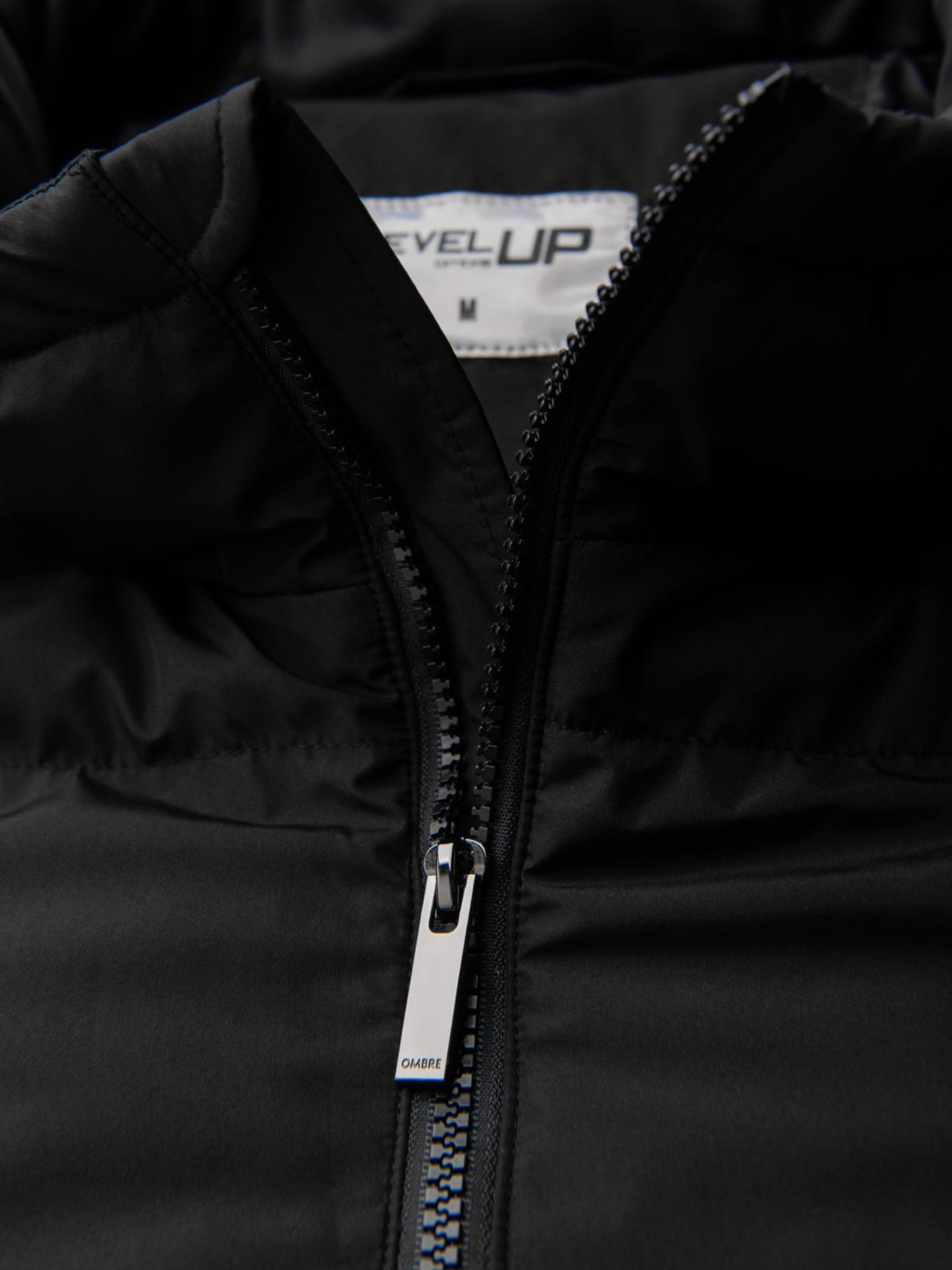 Мъжко дълго прошивано зимно яке с качулка - черно V1 OM-JALJ-0309 Ombre Clothing