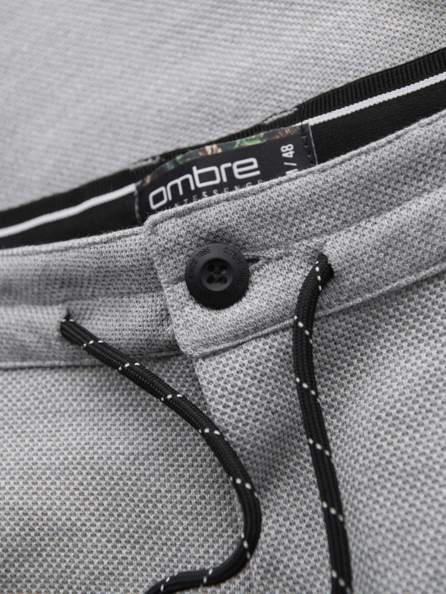 Мъжки панталони от пике плетиво с регулируем пояс - черни V2 OM-PACP-0283 Ombre Clothing
