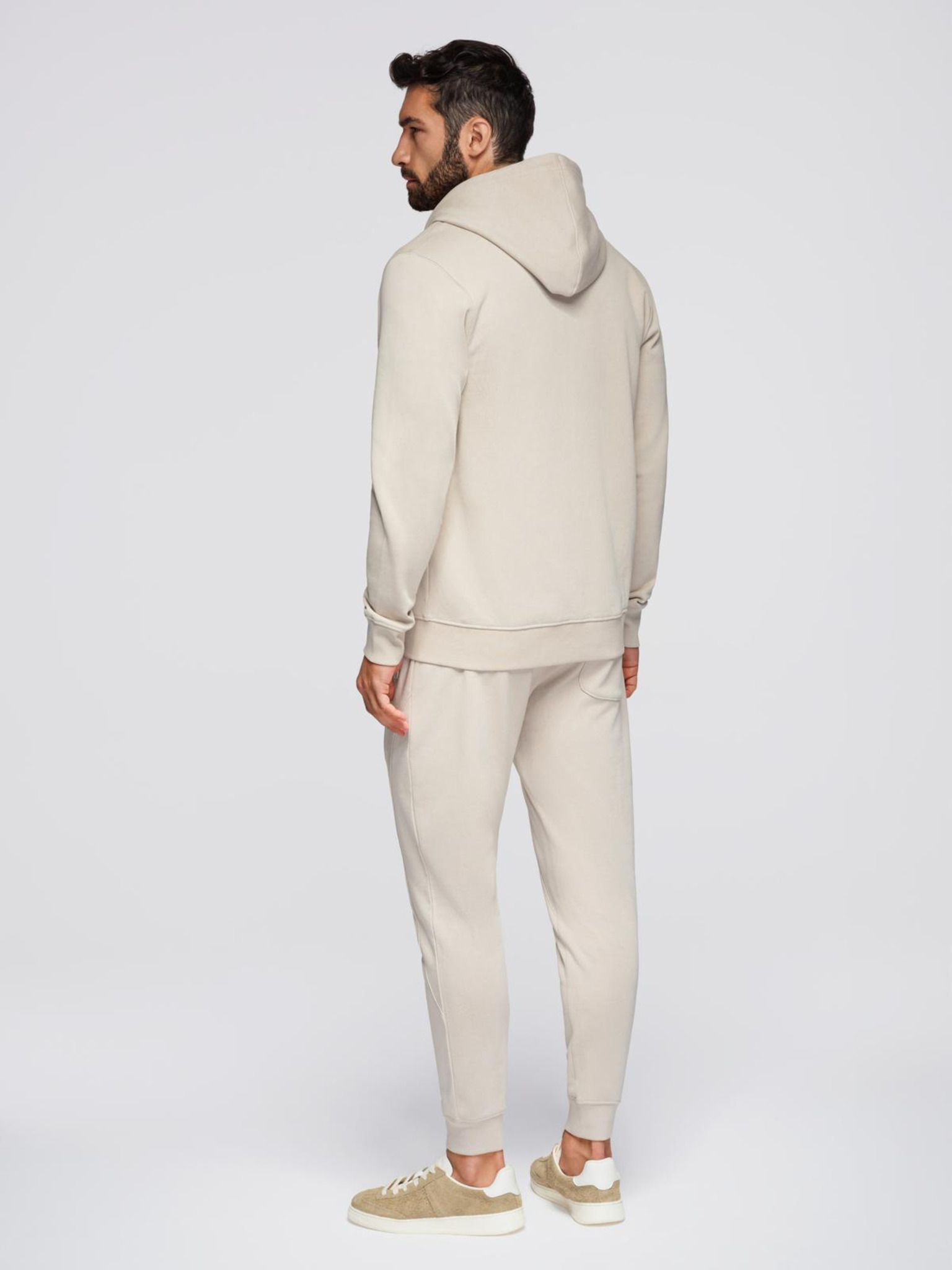 Мъжки суитшърт с качулка и цип + панталони джогър - бежов V4 Z118 Ombre Clothing
