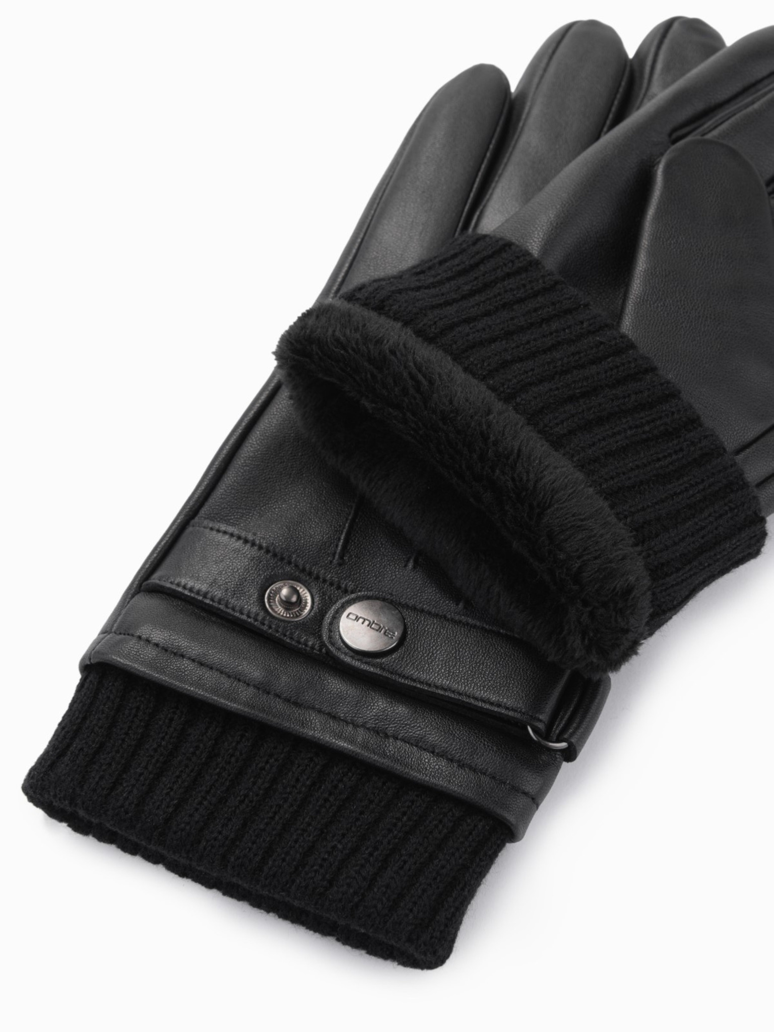 Мъжки сензорни кожени ръкавици - черно V1 OM-ACGL-0128 Ombre Clothing