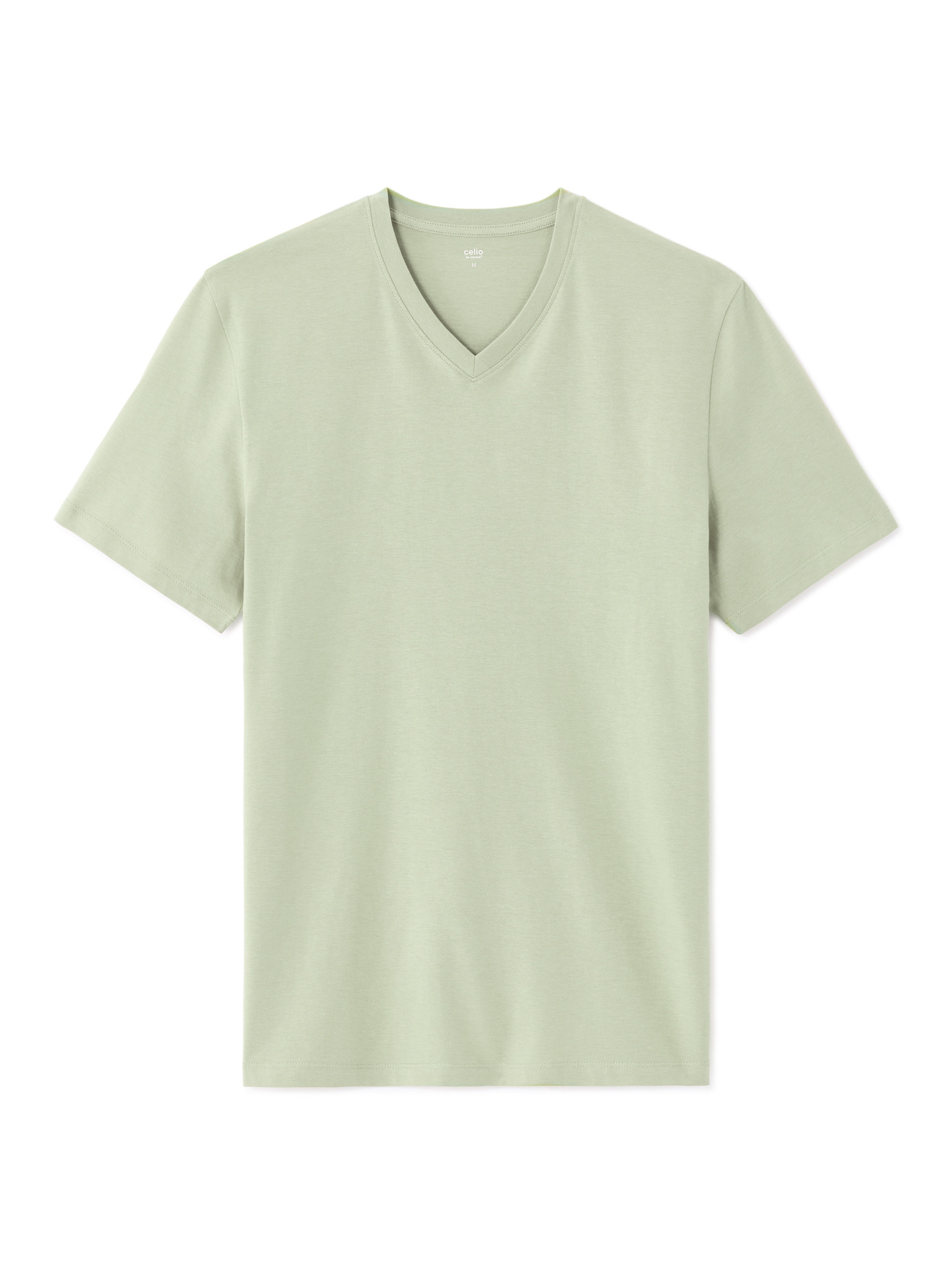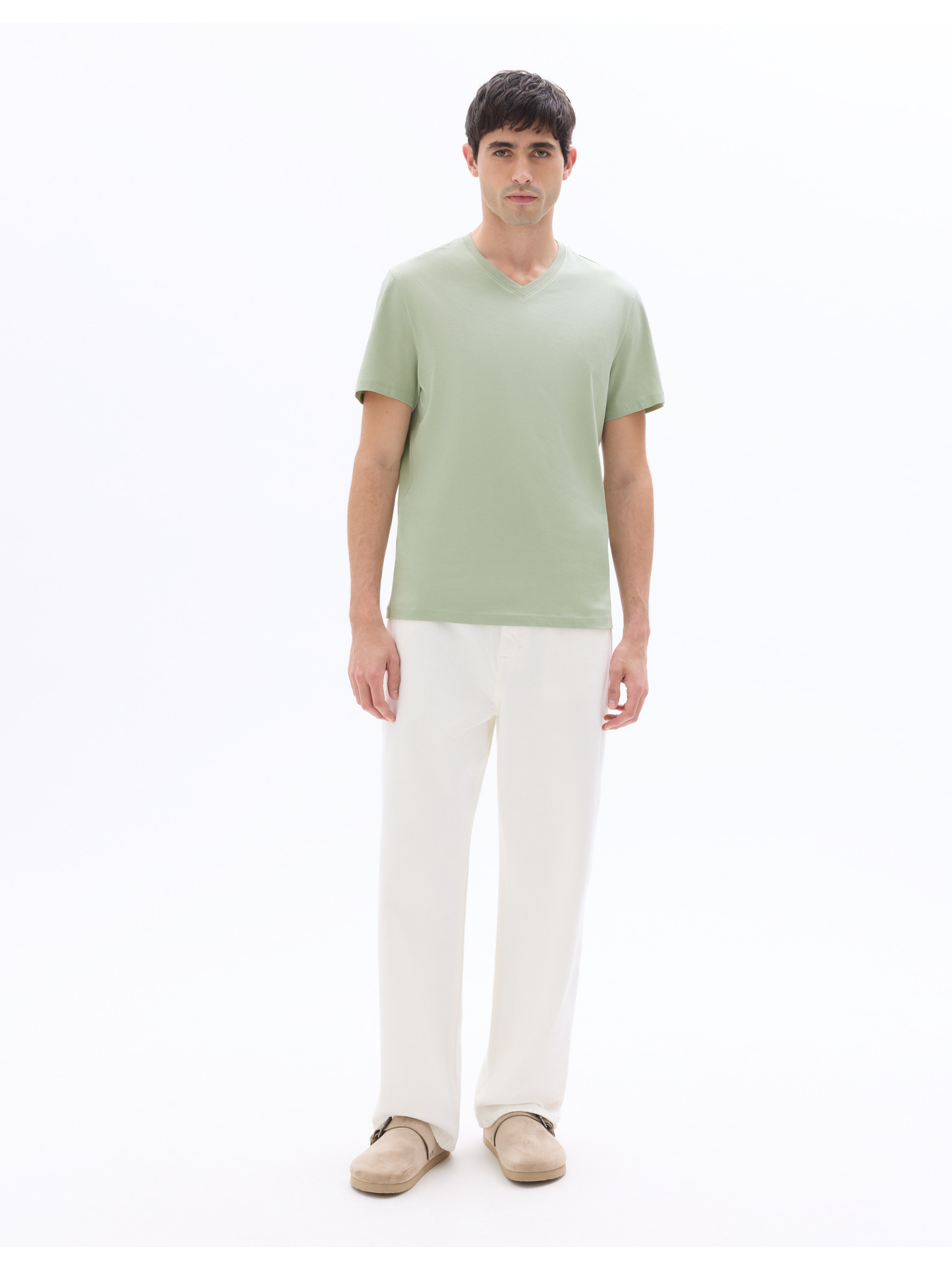 Класическа мъжка тениска BASIC с V-образно деколте от памук - зелена V11 OM-TSBS-0145 Ombre Clothing