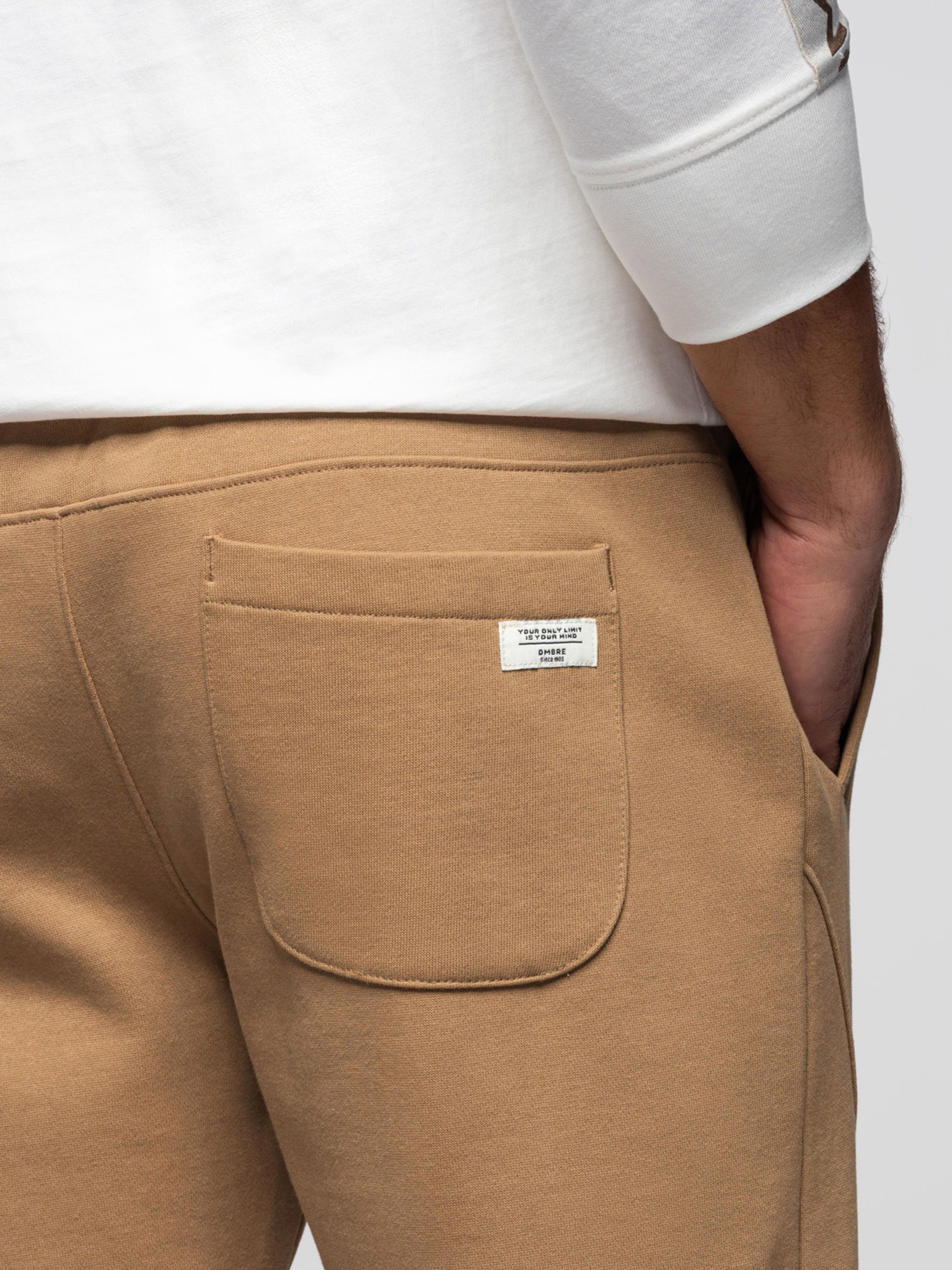 Мъжки суитшърт BASIC jogger с ребрирован край - светло бежово V1 OM-PABS-0305 Ombre Clothing