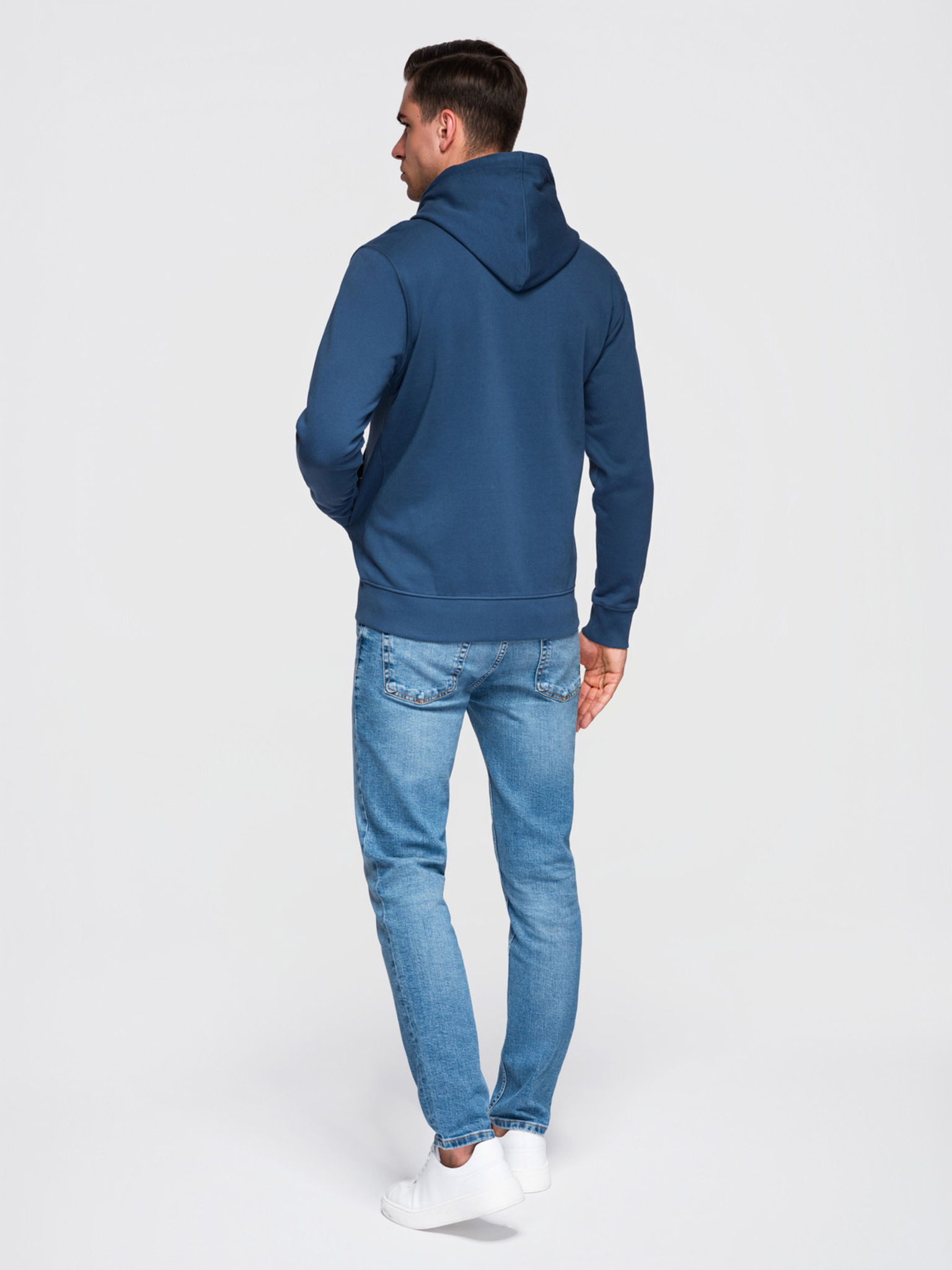 Мъжко суитшърт с качулка от гладко плетиво - тъмно синьо V4 OM-SZBC-0196 Ombre Clothing