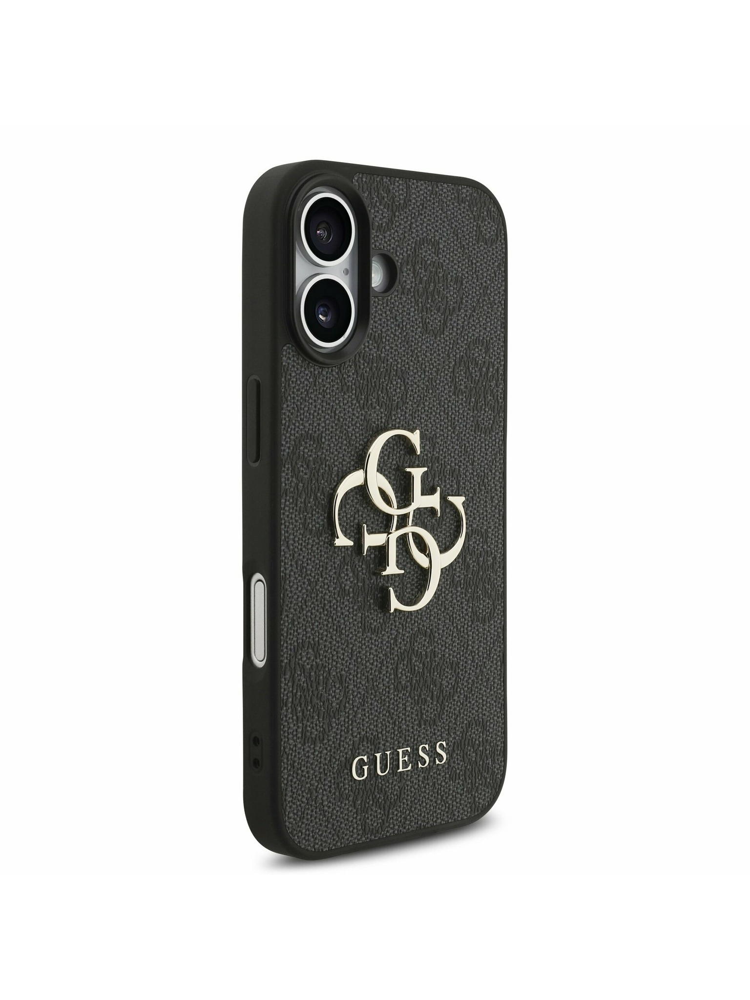 Guess PU Grained 4G Метален лого Заден капак за iPhone 16e Черен