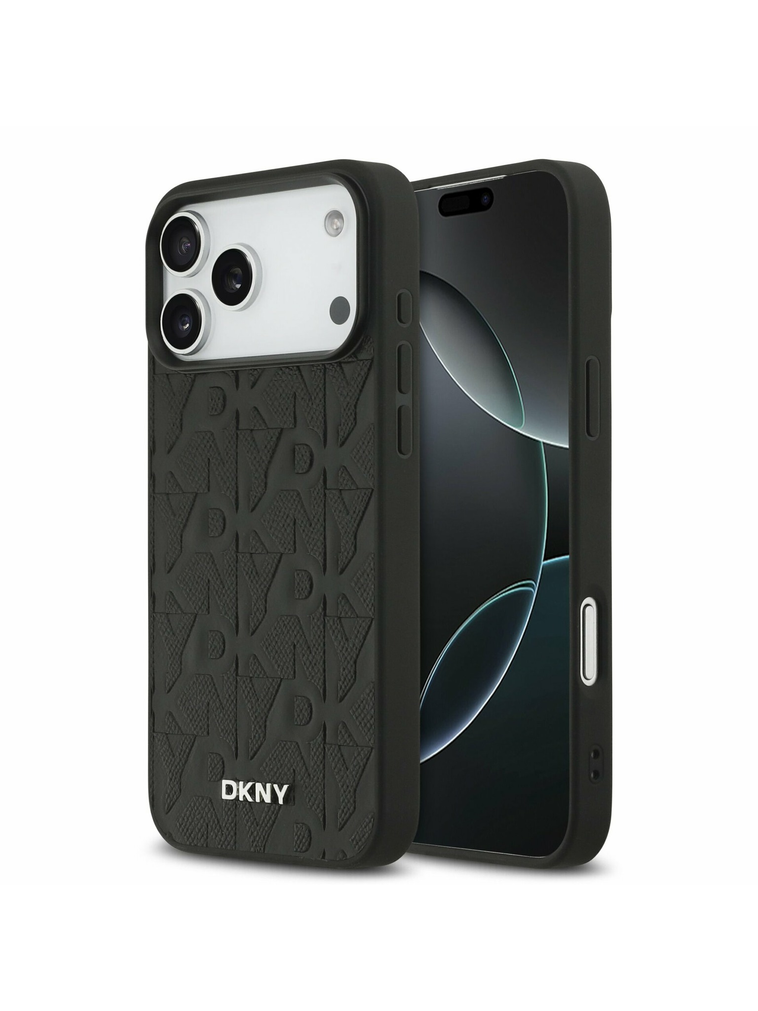 DKNY PU кожа с повтарящ се десен и лого MagSafe заден капак за iPhone 16 Pro Max Black