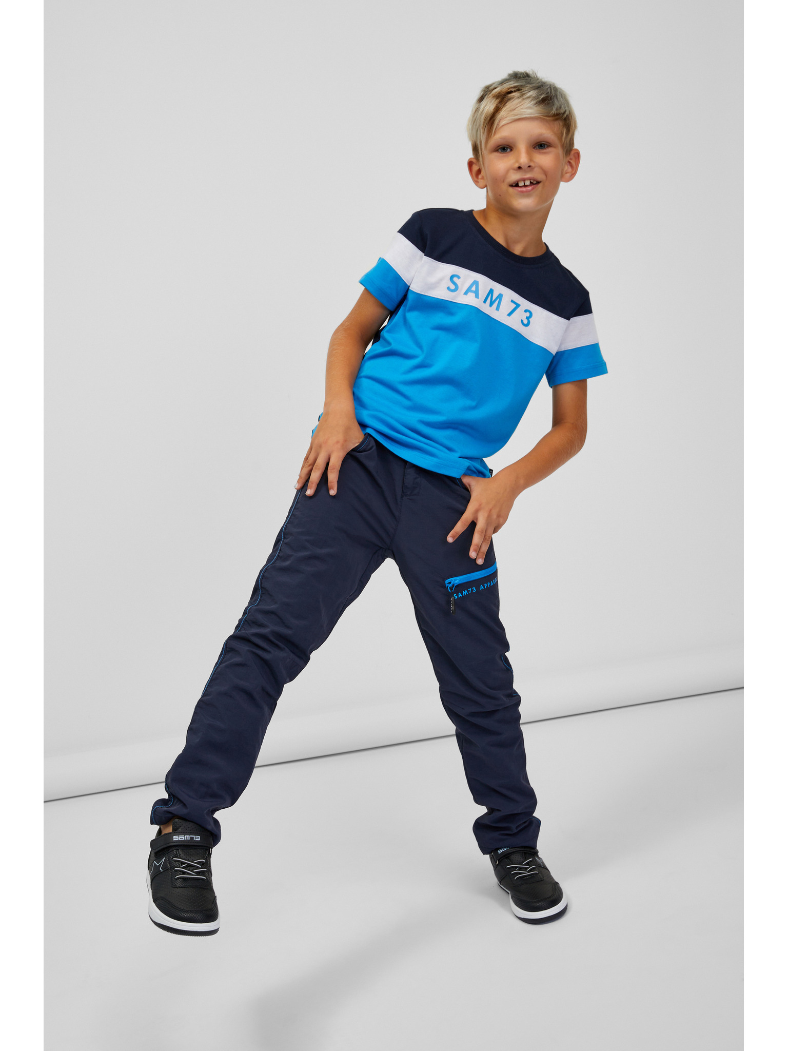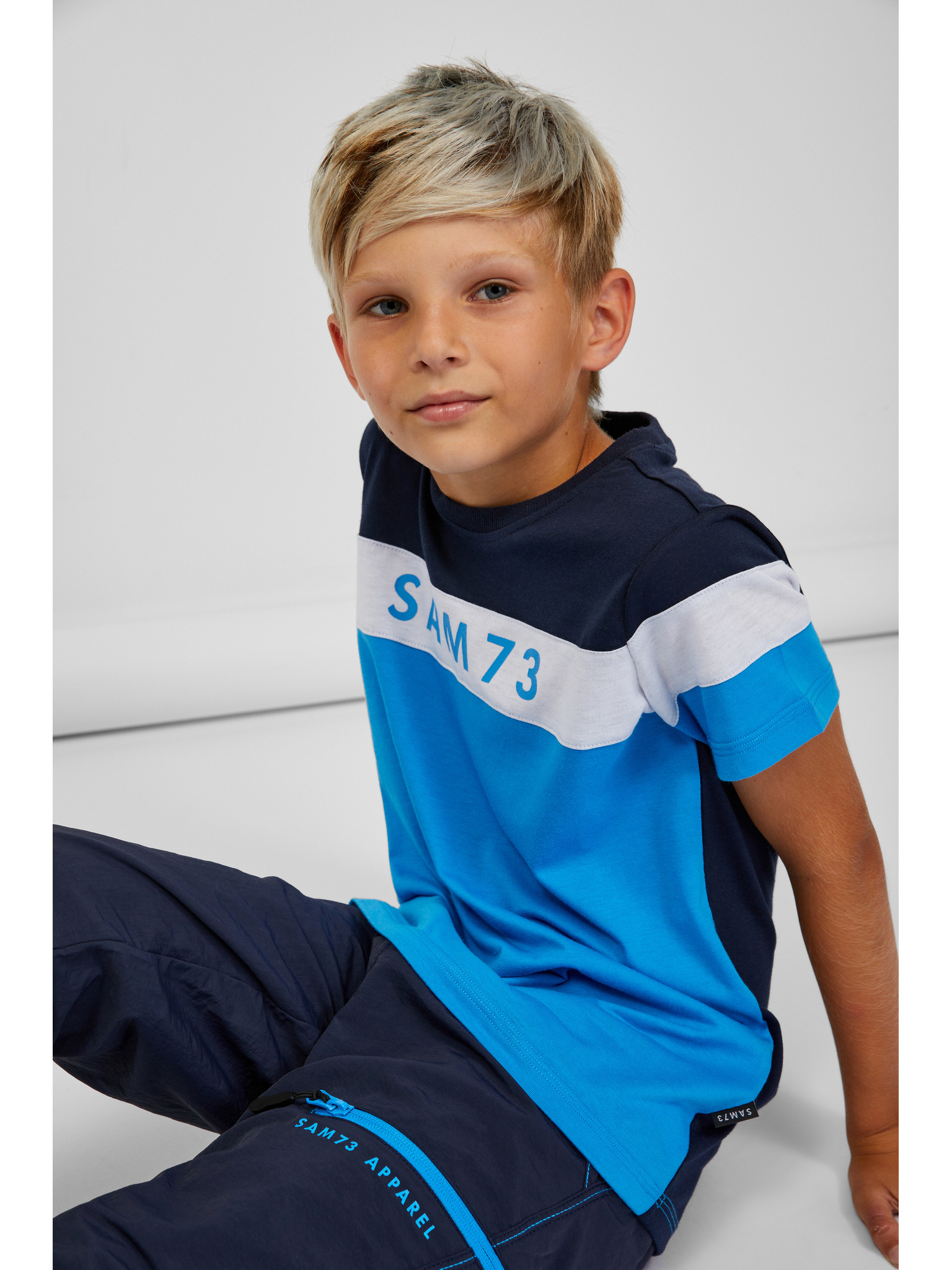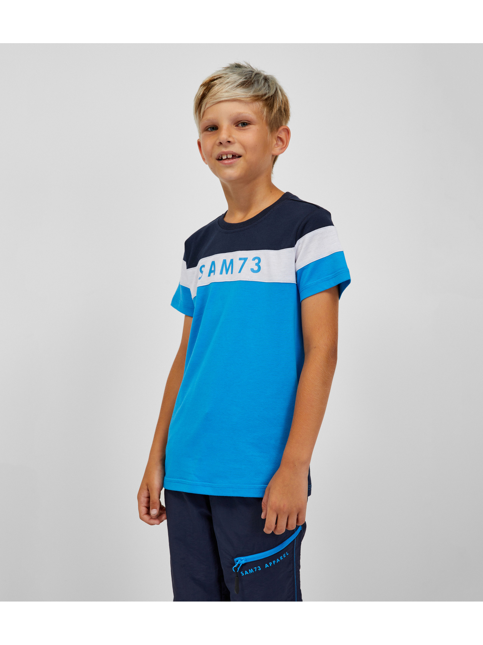 Сива и синя тениска за момчета със SAM 73