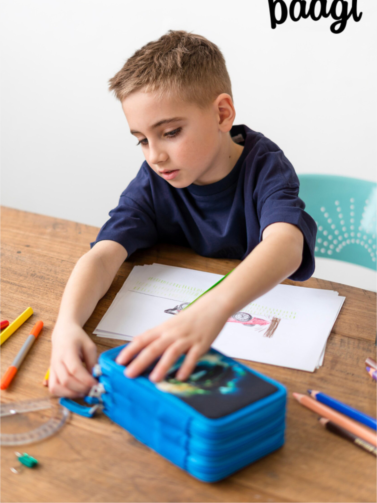 Син училищен моливник скейт структура Baagl