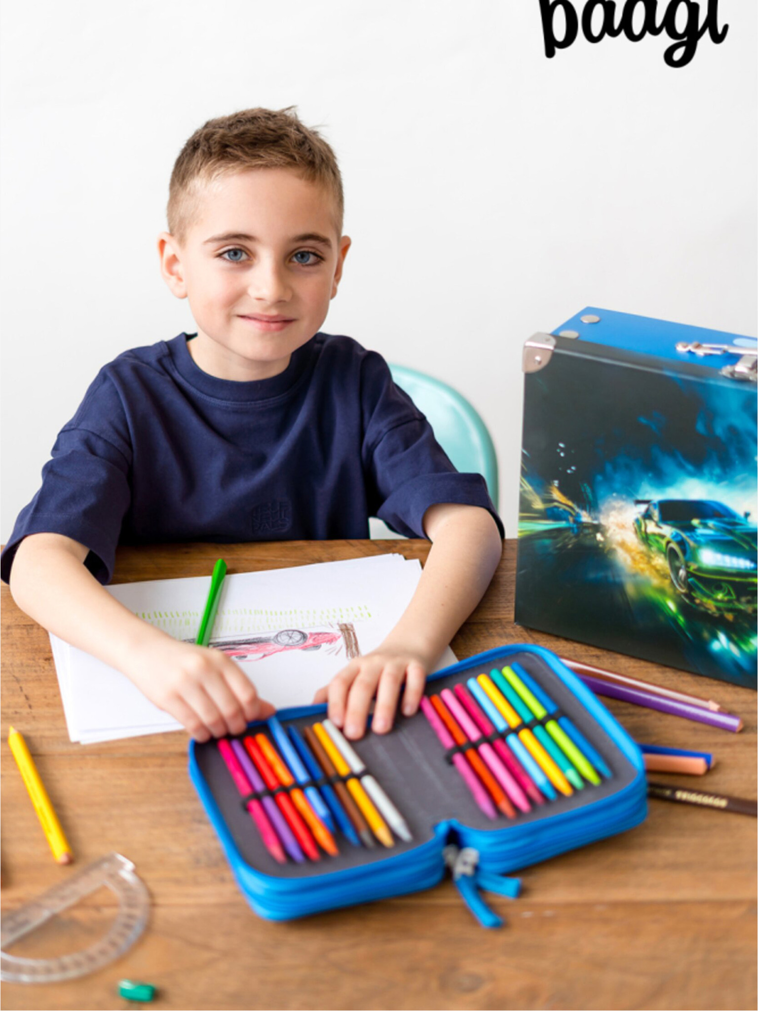Син ученически калъф ocean Baagl