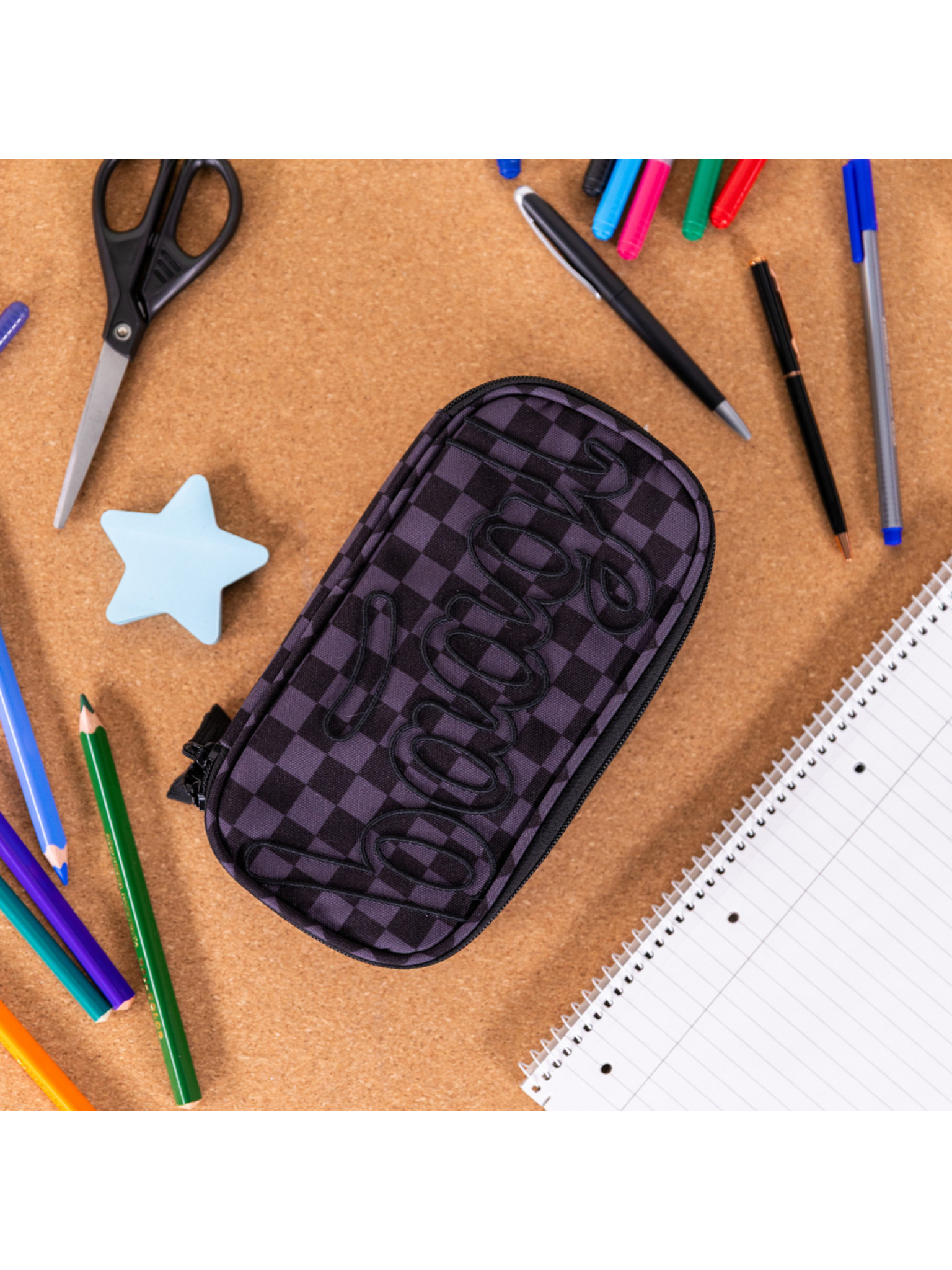 Черен училищен моливник едноетажен teribear Baagl