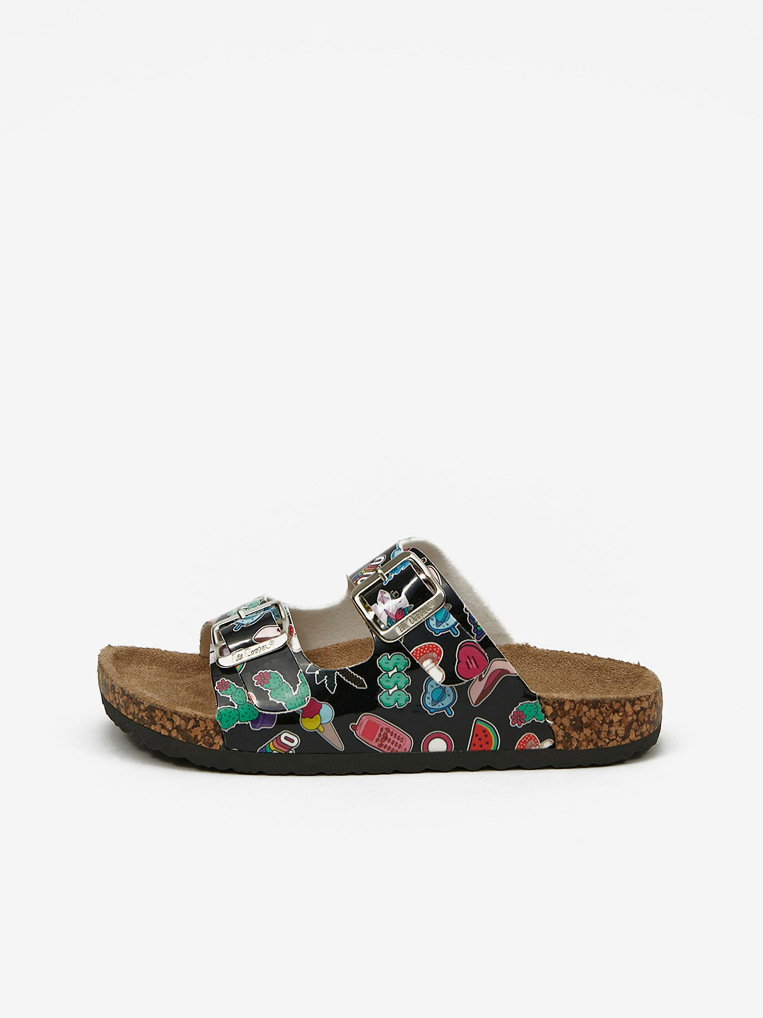 Черни момичешки чехли с шарка Lee Cooper