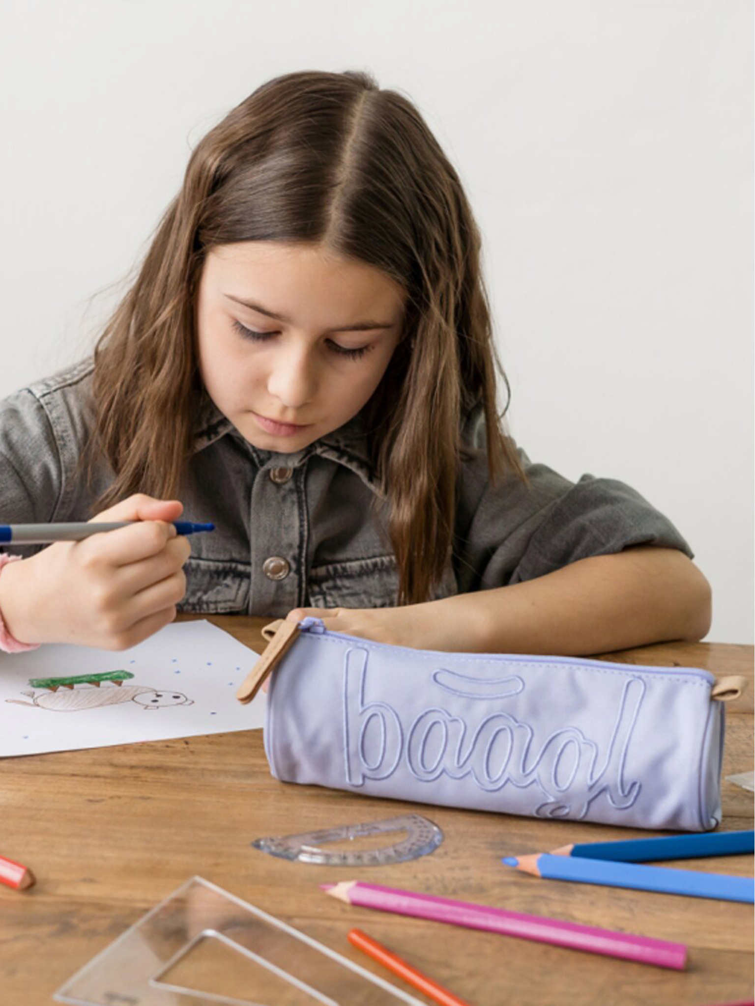 Сив училищен моливник etue lava Baagl