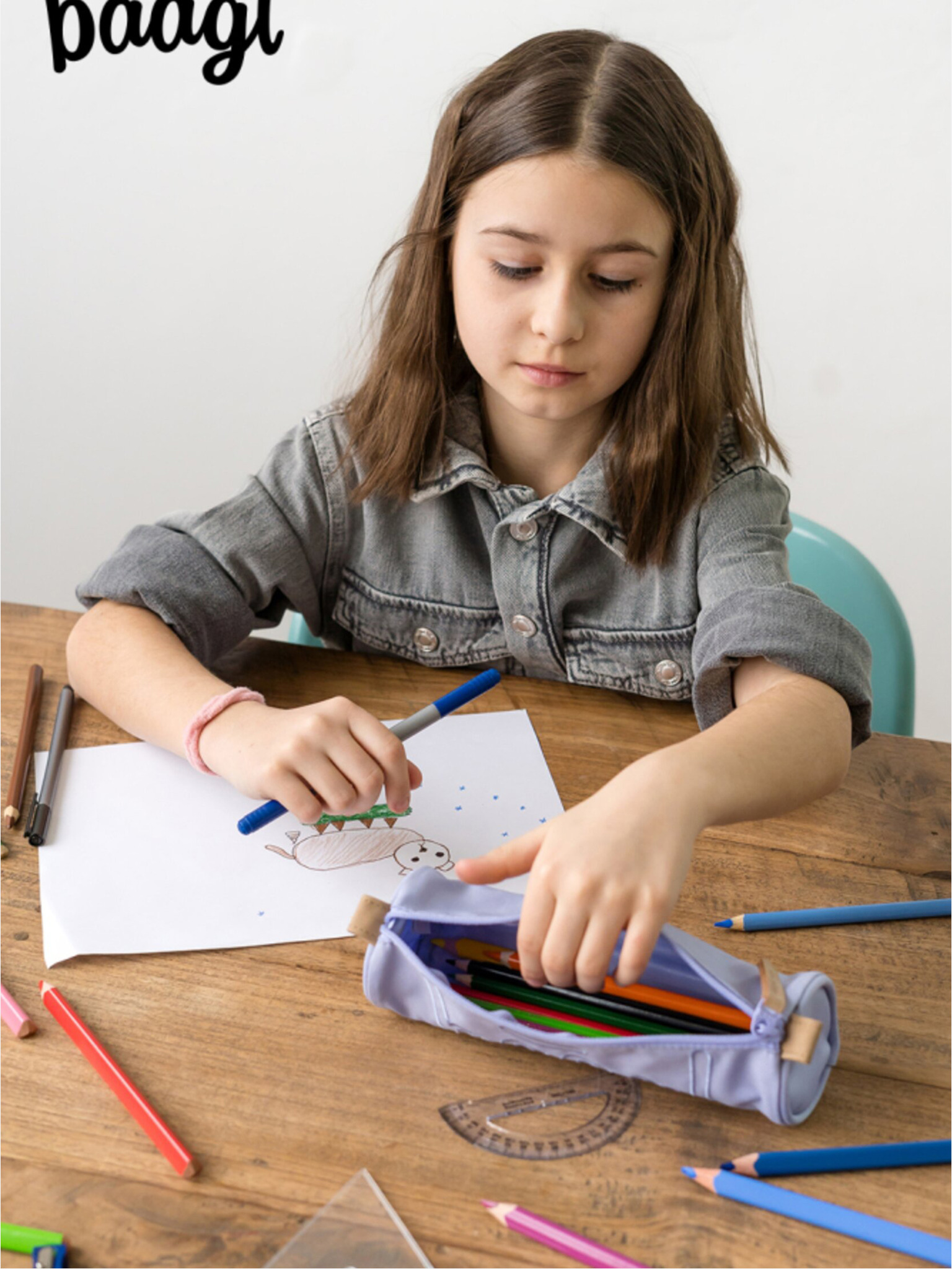 Лилав училищен моливник с едно ниво домашни любимци Baagl