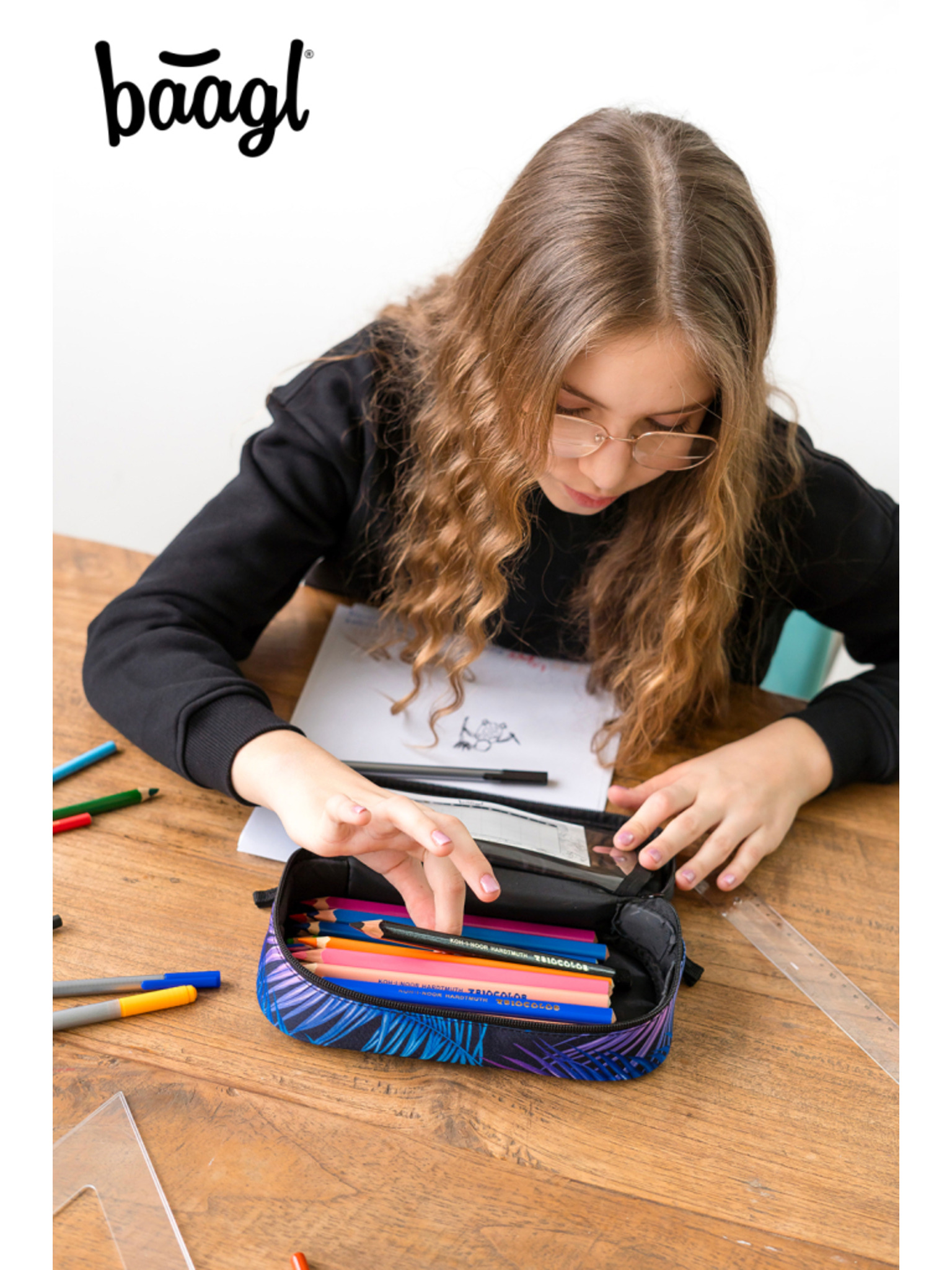 Син училищен моливник скейт структура Baagl