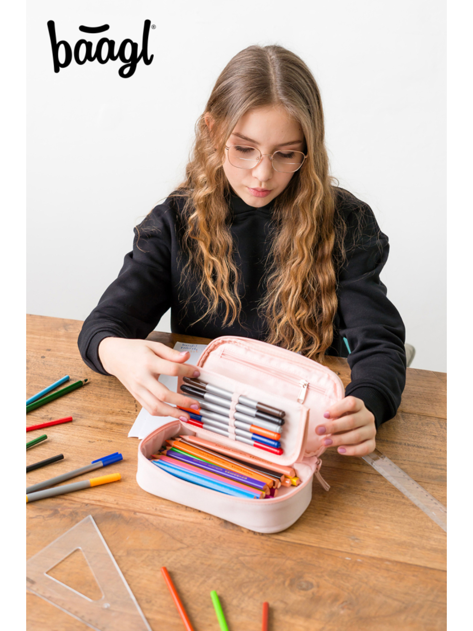 Кремав ученически калъф Baagl Creamy